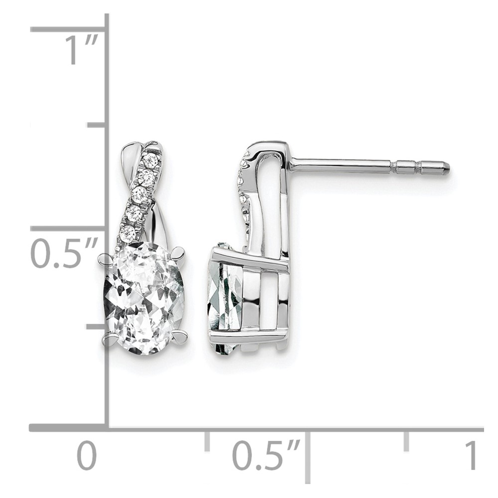 14K White Gold 7×5 Oval April/White Topaz and Diamond Earrings