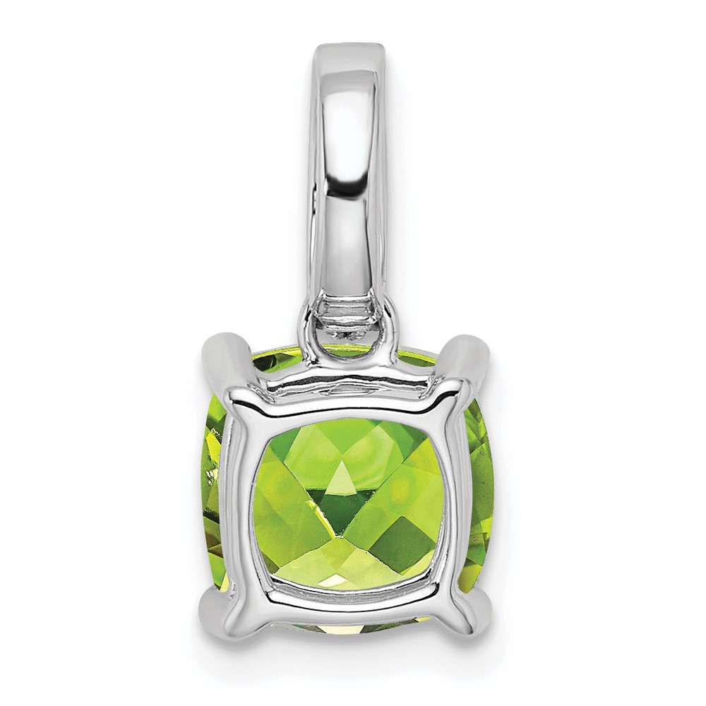 14k White Gold 8mm Cushion Peridot and Diamond Pendant
