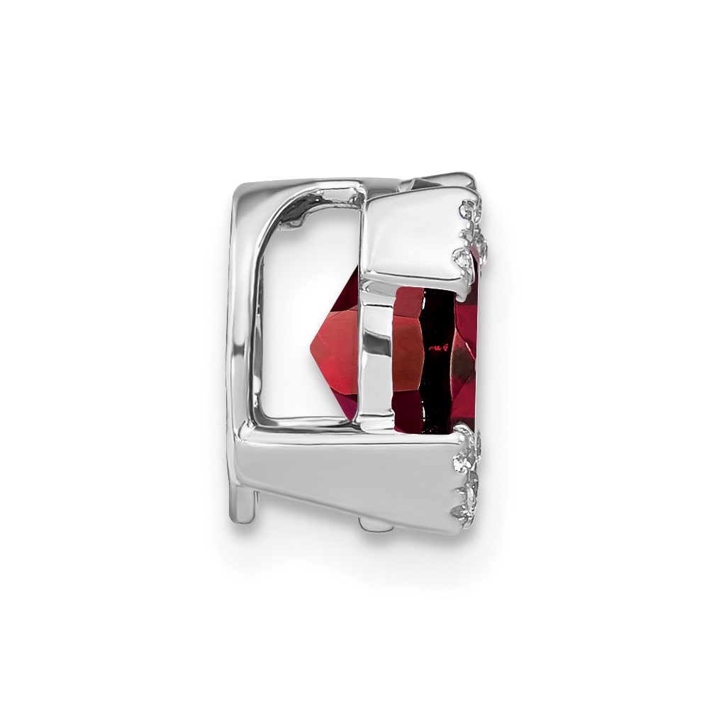 14k White Gold 9x7mm Oval Garnet and Diamond Chain Slide