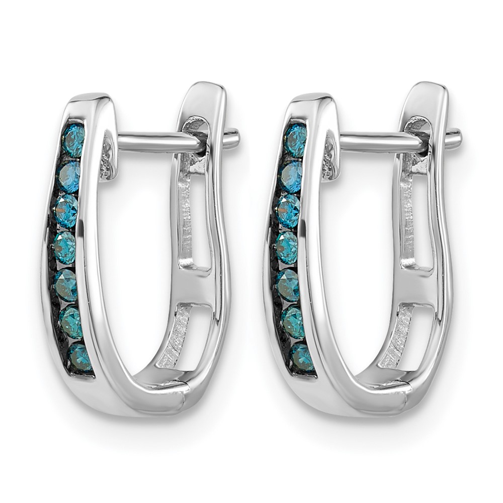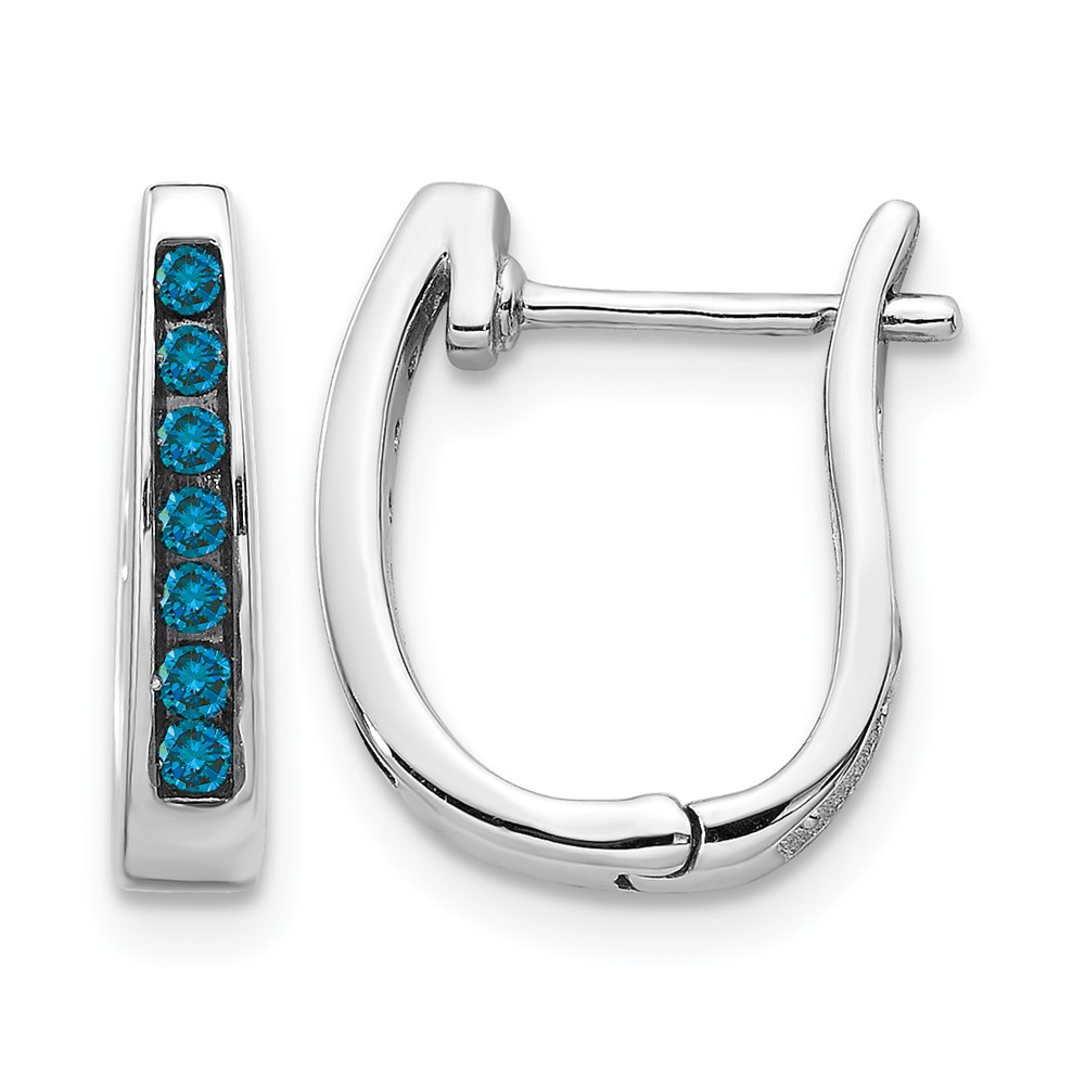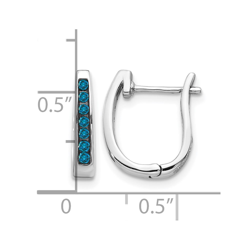 14k White Gold Blue Diamond 3mm Hinged Hoop Earrings