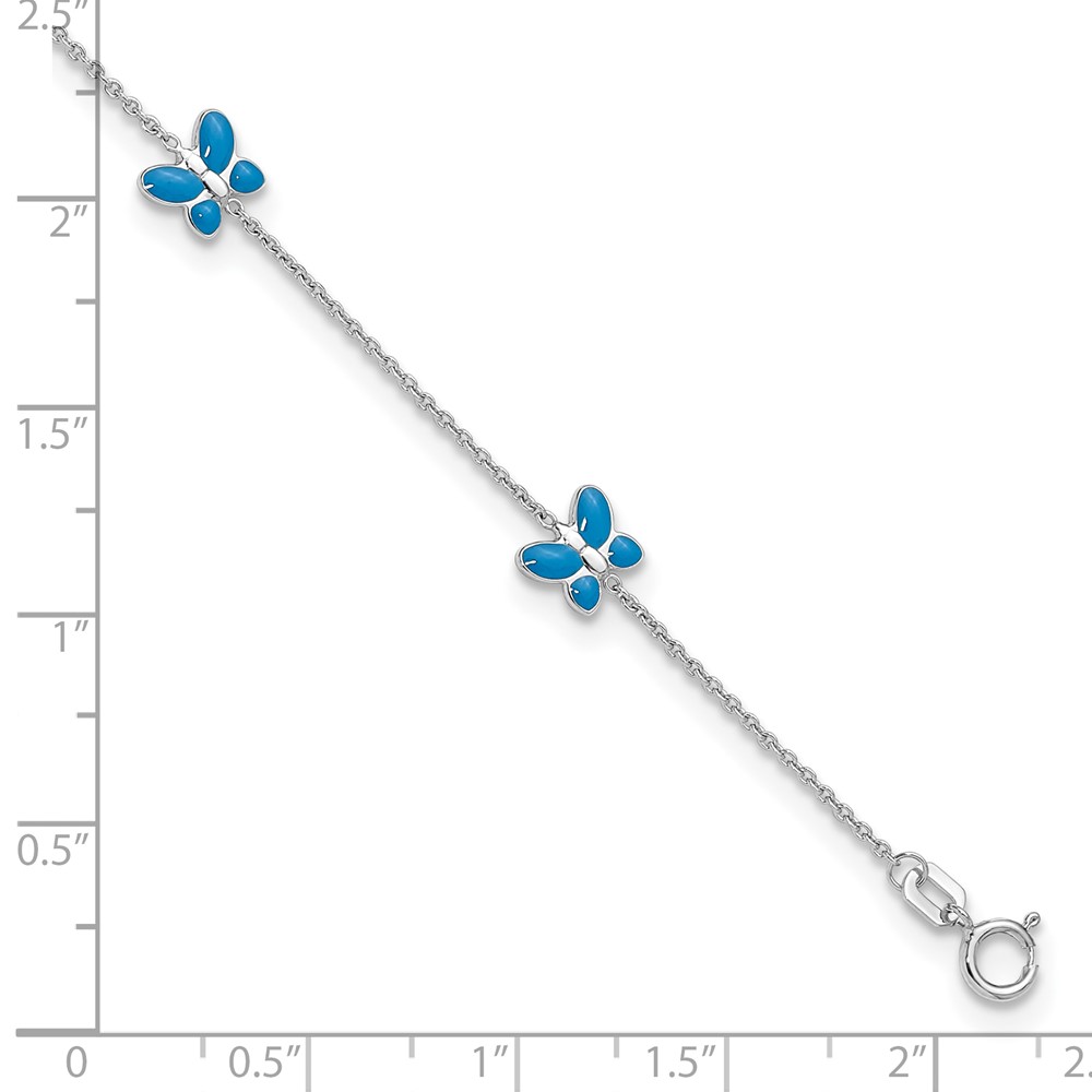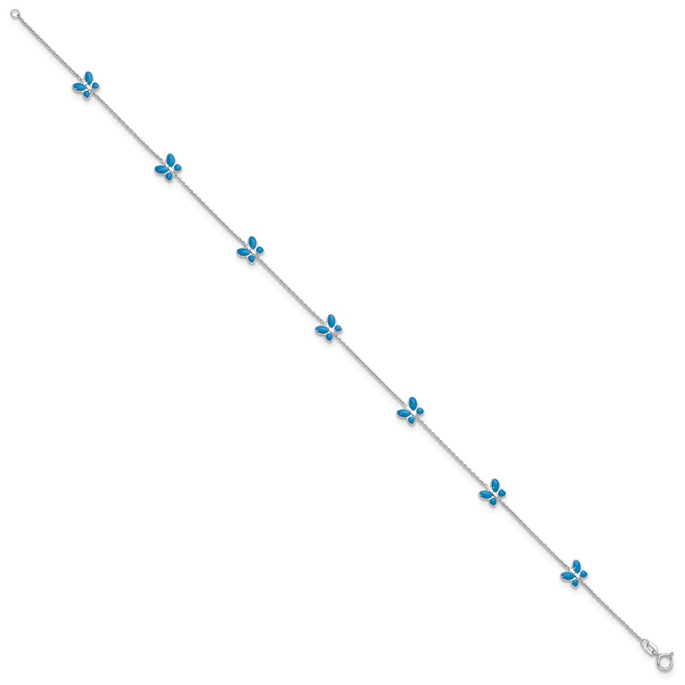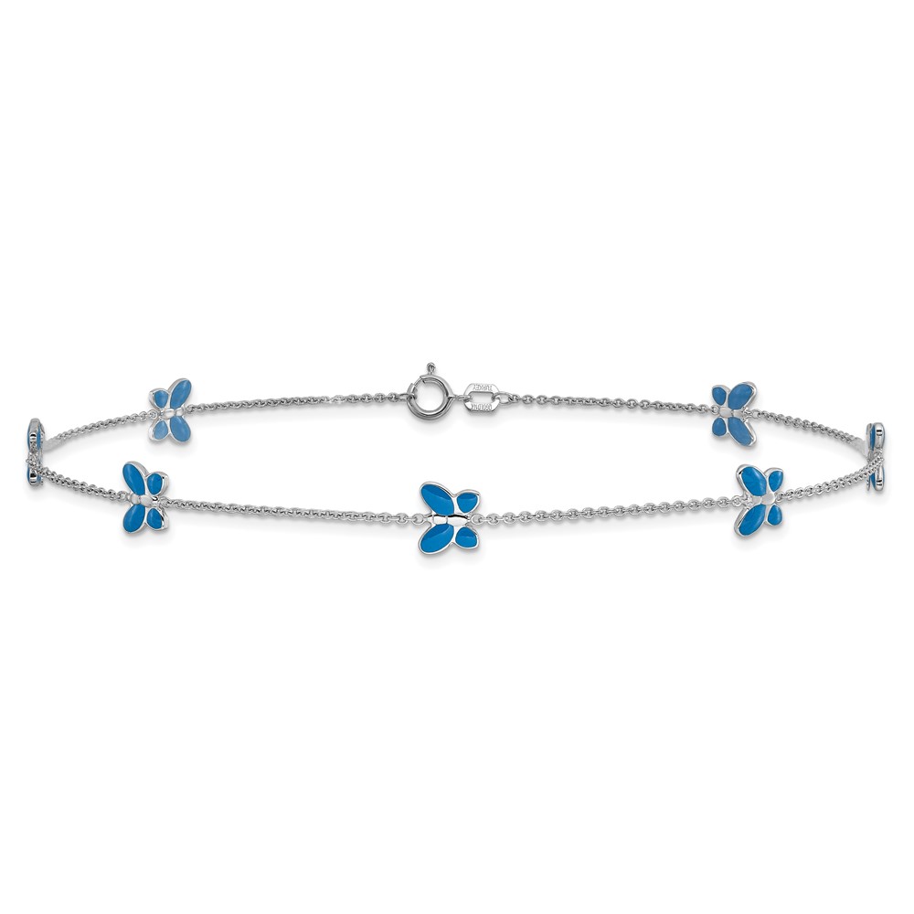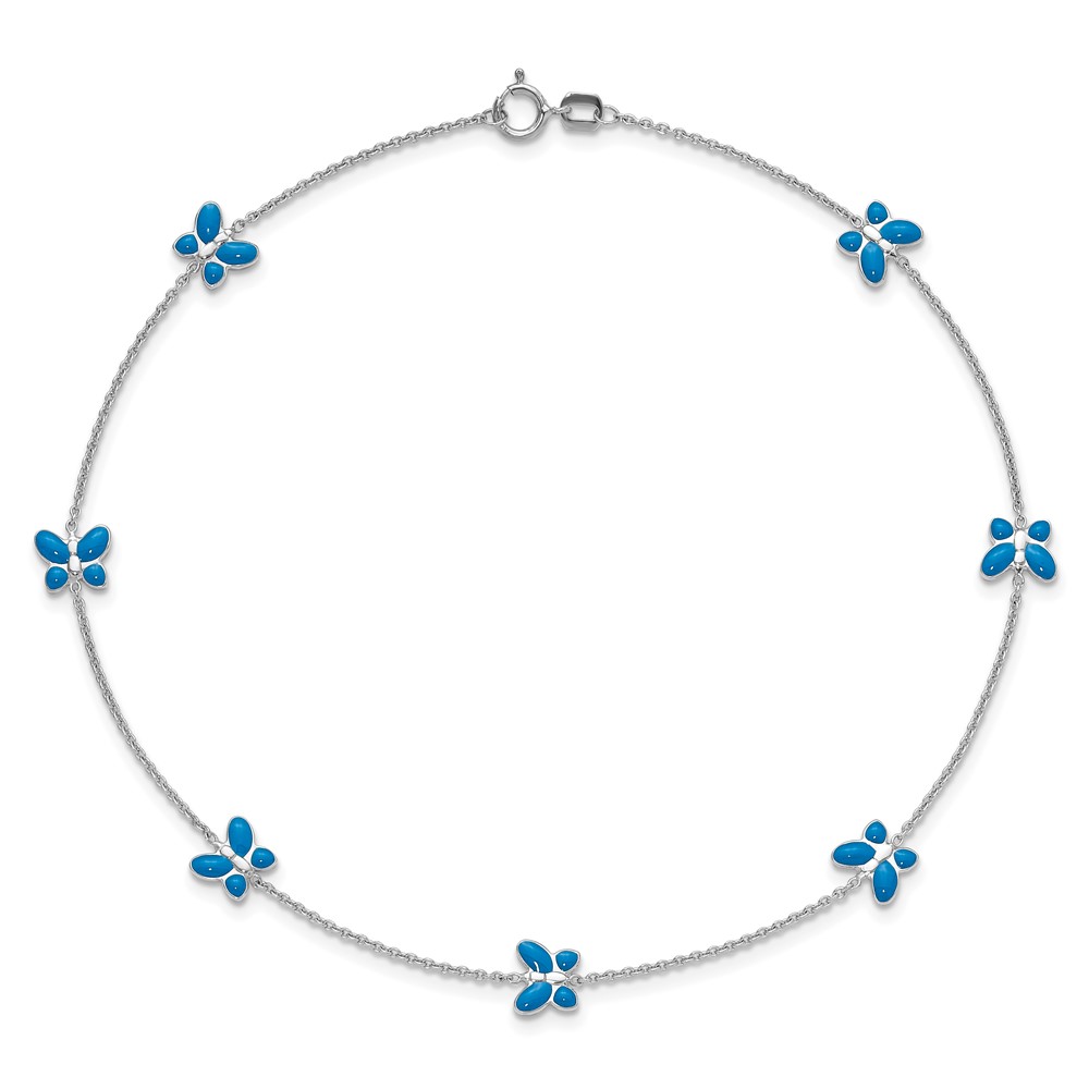 14k White Gold Blue Enameled Butterflies 7-Station Anklet