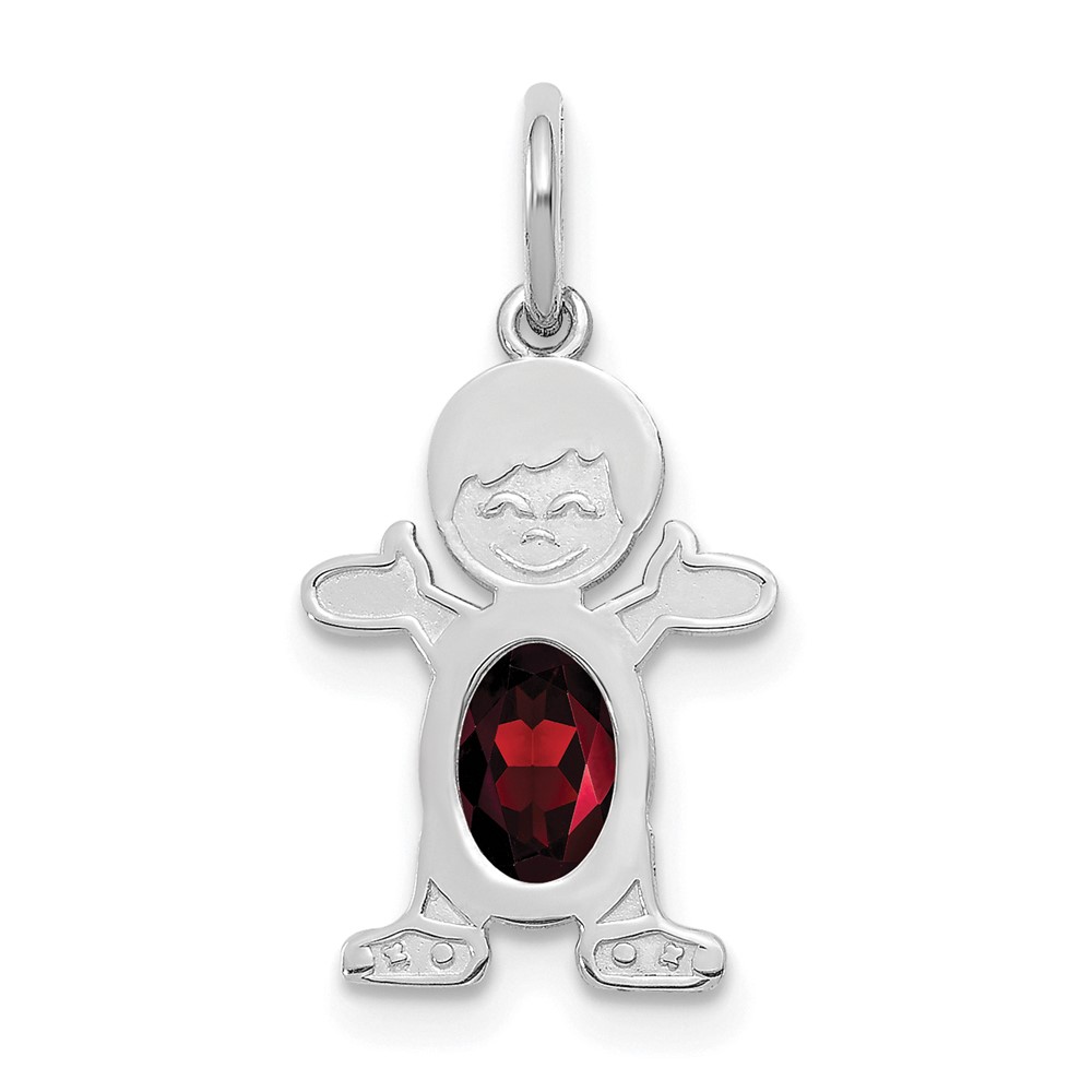14K White Gold Boy Charm 6×4 Oval Genuine Garnet-January