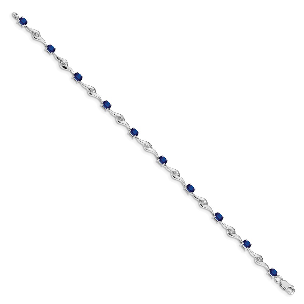 14k White Gold Complete Oval Blue Sapphire and Round White Sapphire Curved Link 7 inch Bracelet
