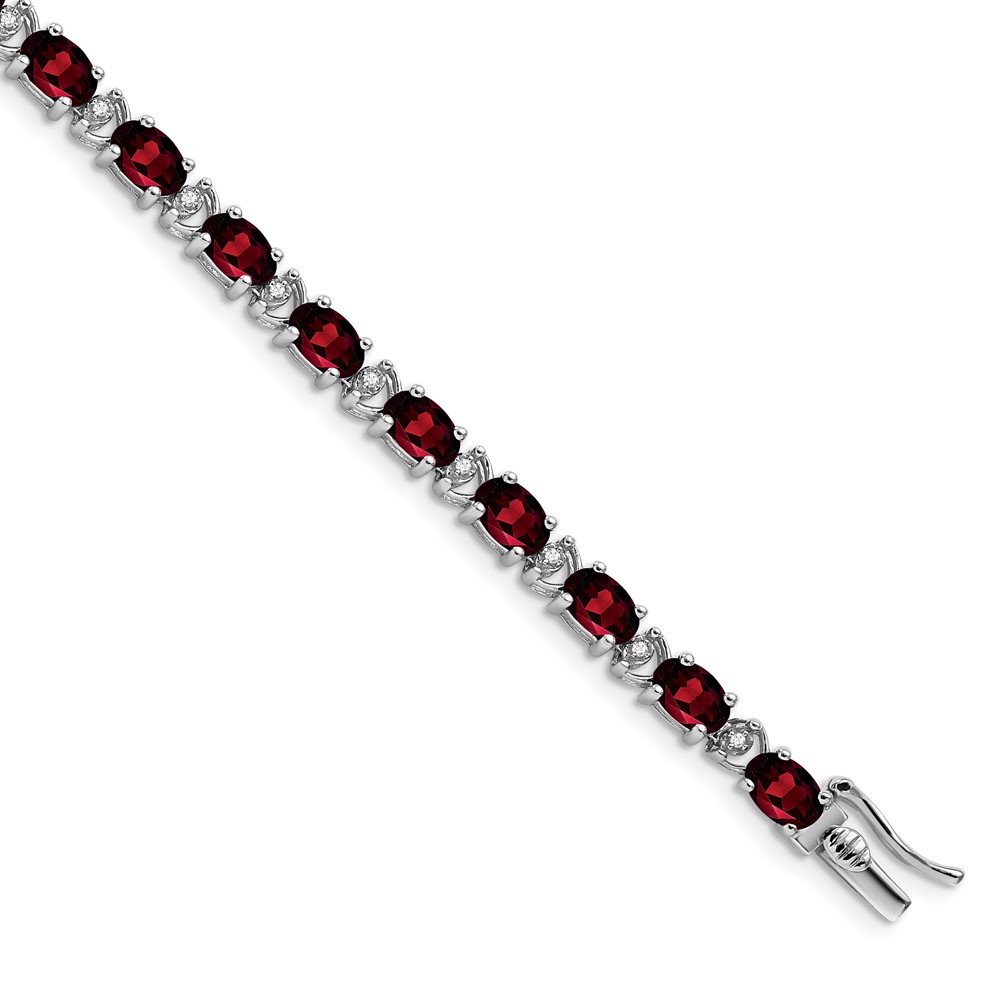 14k White Gold Complete Oval Garnet and Diamond 7 inch Bracelet
