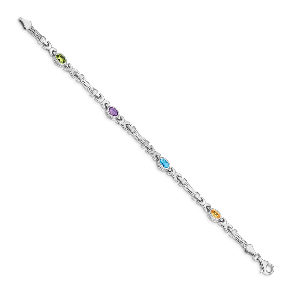 14k White Gold Complete Oval Peridot/Amethyst/Aquamarine/Citrine Fancy Link 7 inch Rainbow Bracelet