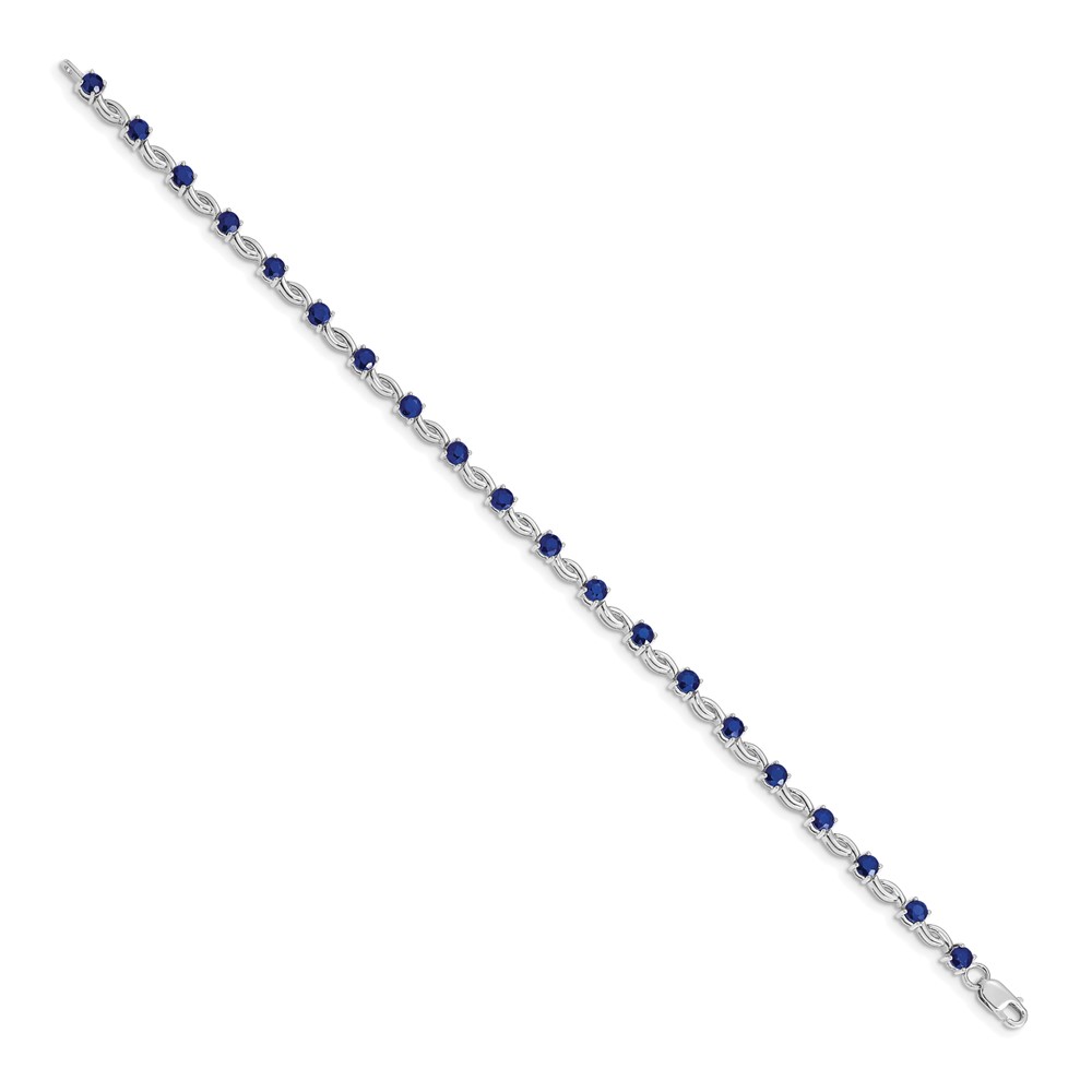 14k White Gold Complete Round Sapphire Fancy Link 7 inch Bracelet