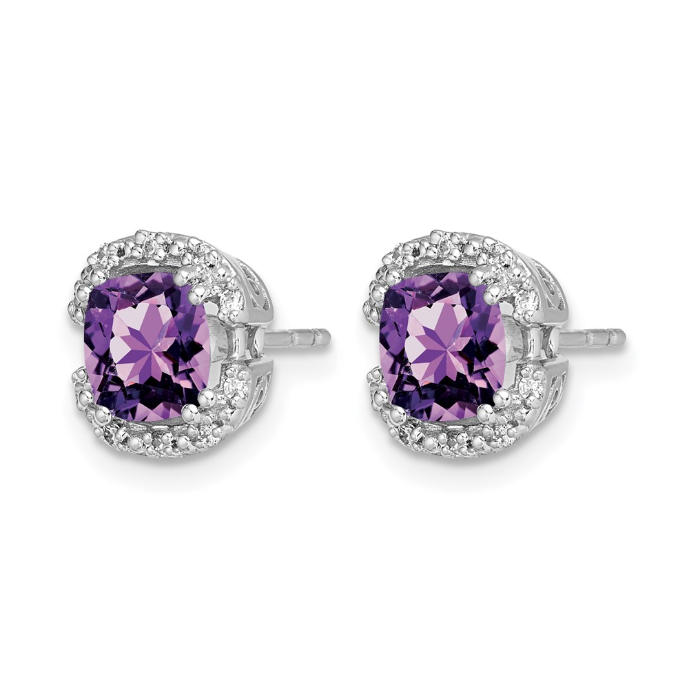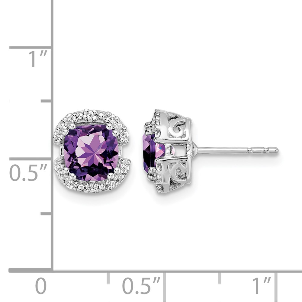 14k White Gold Cushion Amethyst and Diamond Halo Earrings