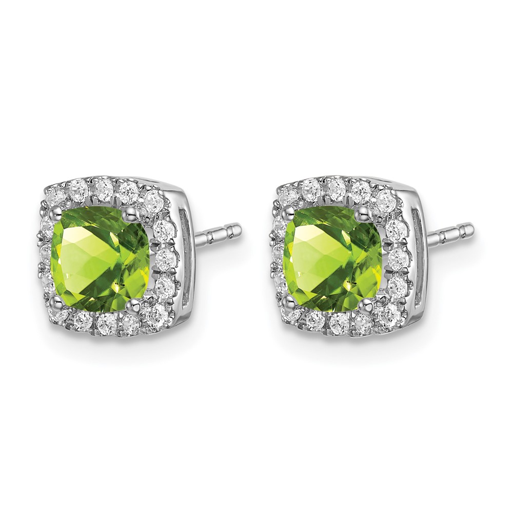 14k White Gold Cushion Peridot and Diamond Halo Earrings