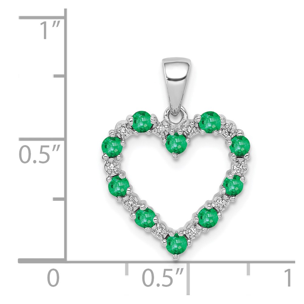 14k White Gold Diamond and Emerald Heart Pendant