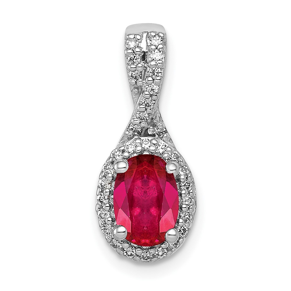 14k White Gold Diamond and Oval Ruby Halo Pendant Fits up to 2mm Regular/3mm Fancy or Reversible Omega