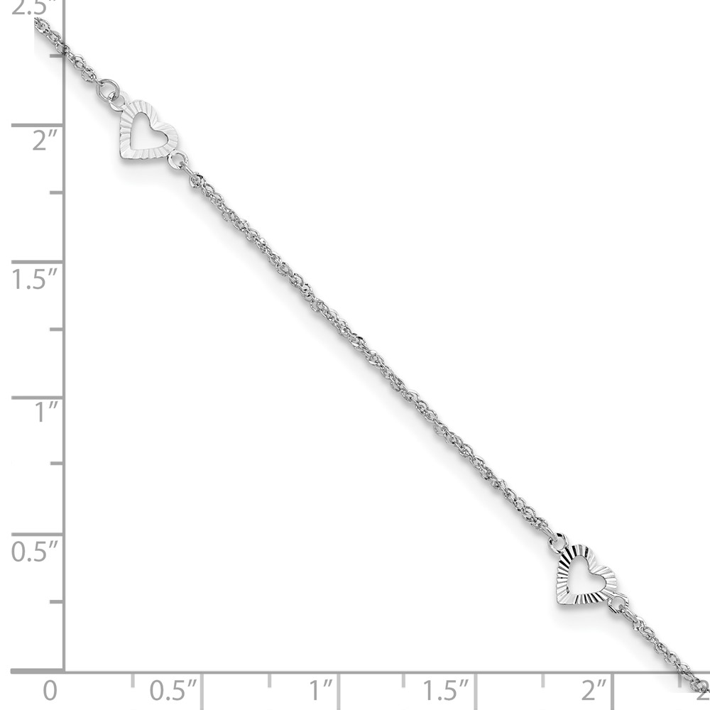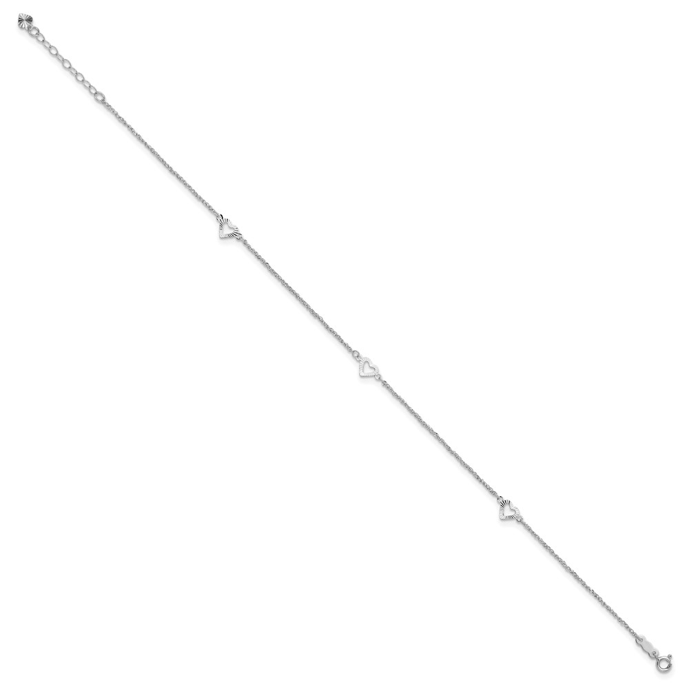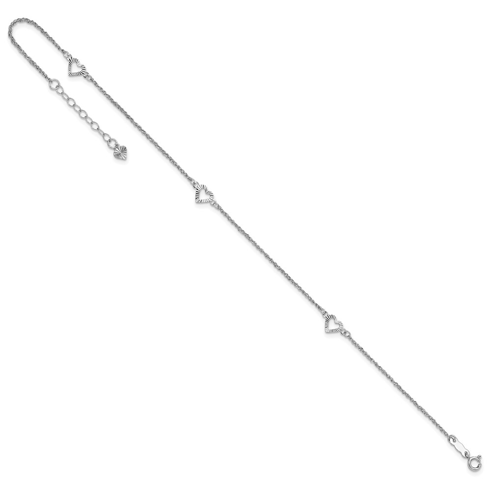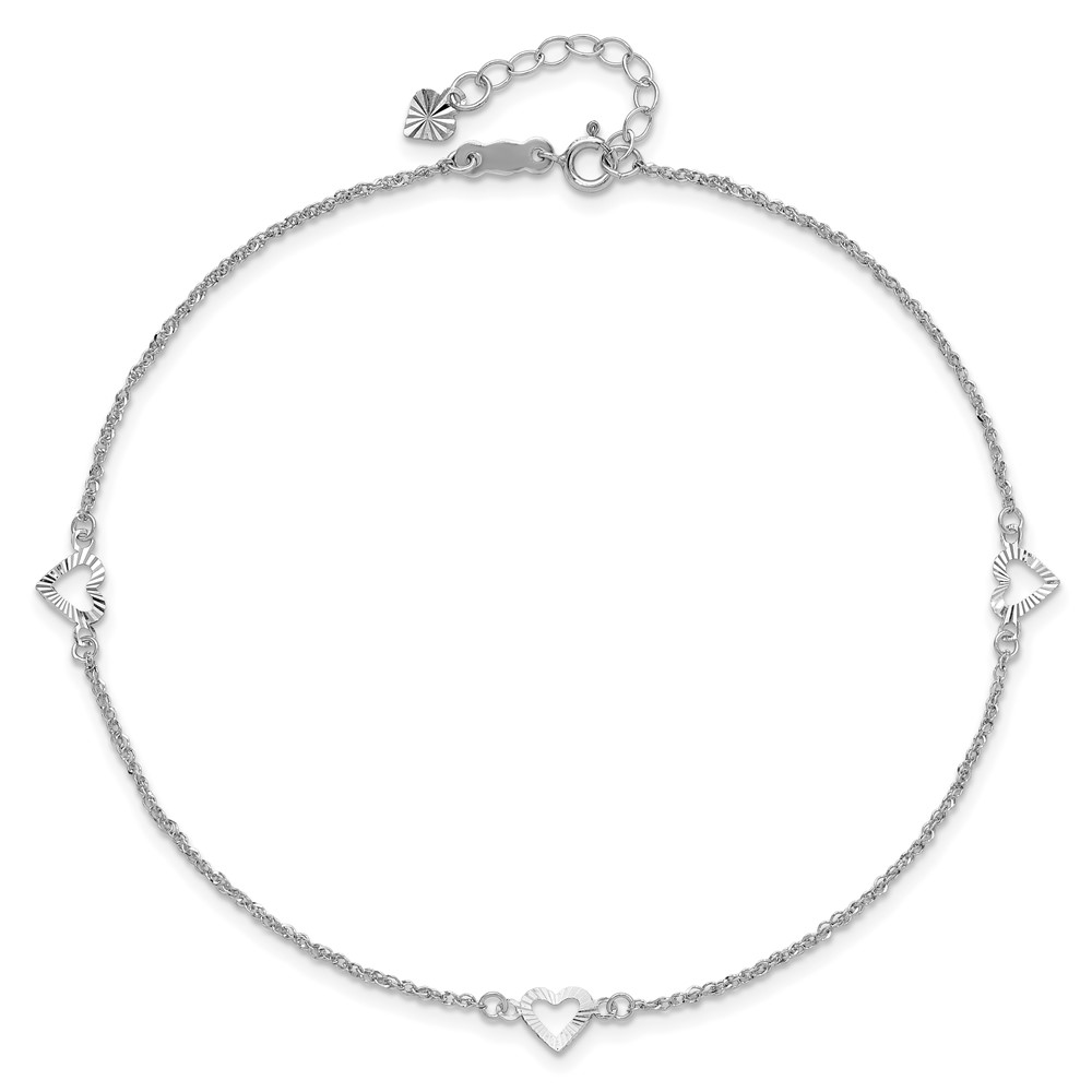 14k White Gold Diamond-cut Hearts 3-Station Plus Extender – Total Anklet