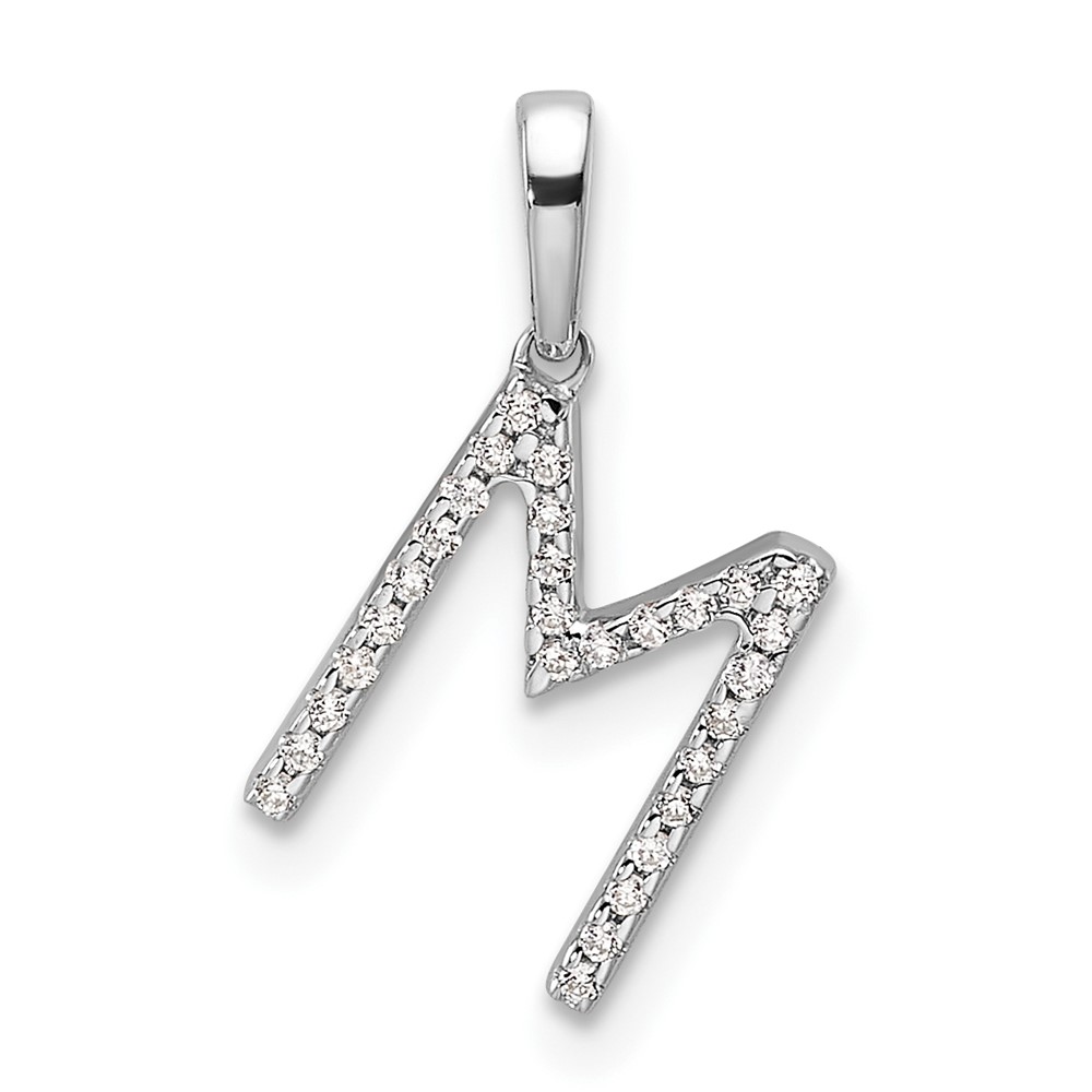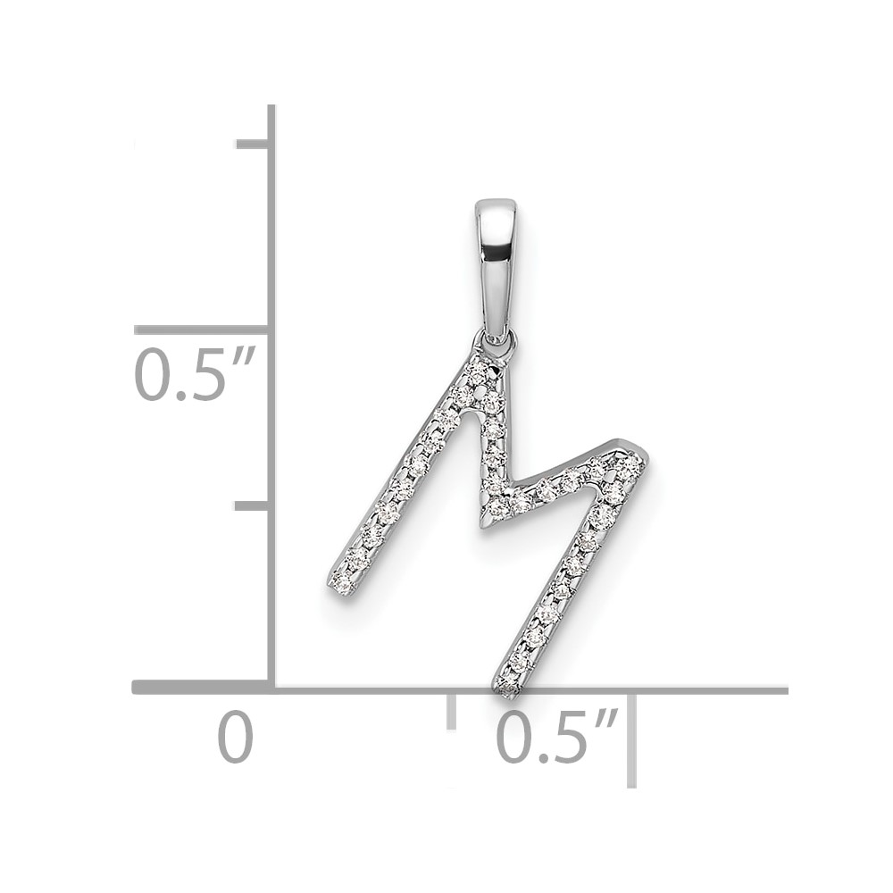 14K White Gold Diamond Letter M Initial Pendant