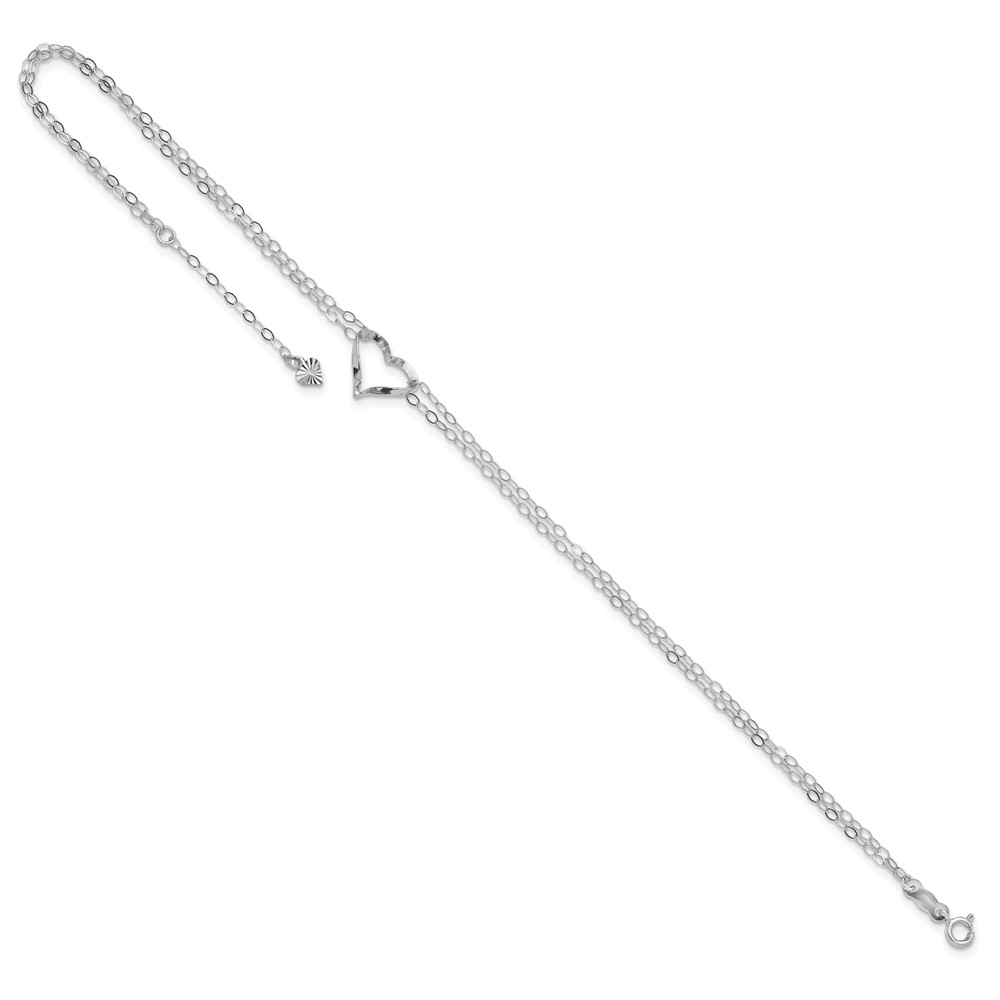 14k White Gold Double Strand Chain Twisted Heart Plus Extender – Total Anklet