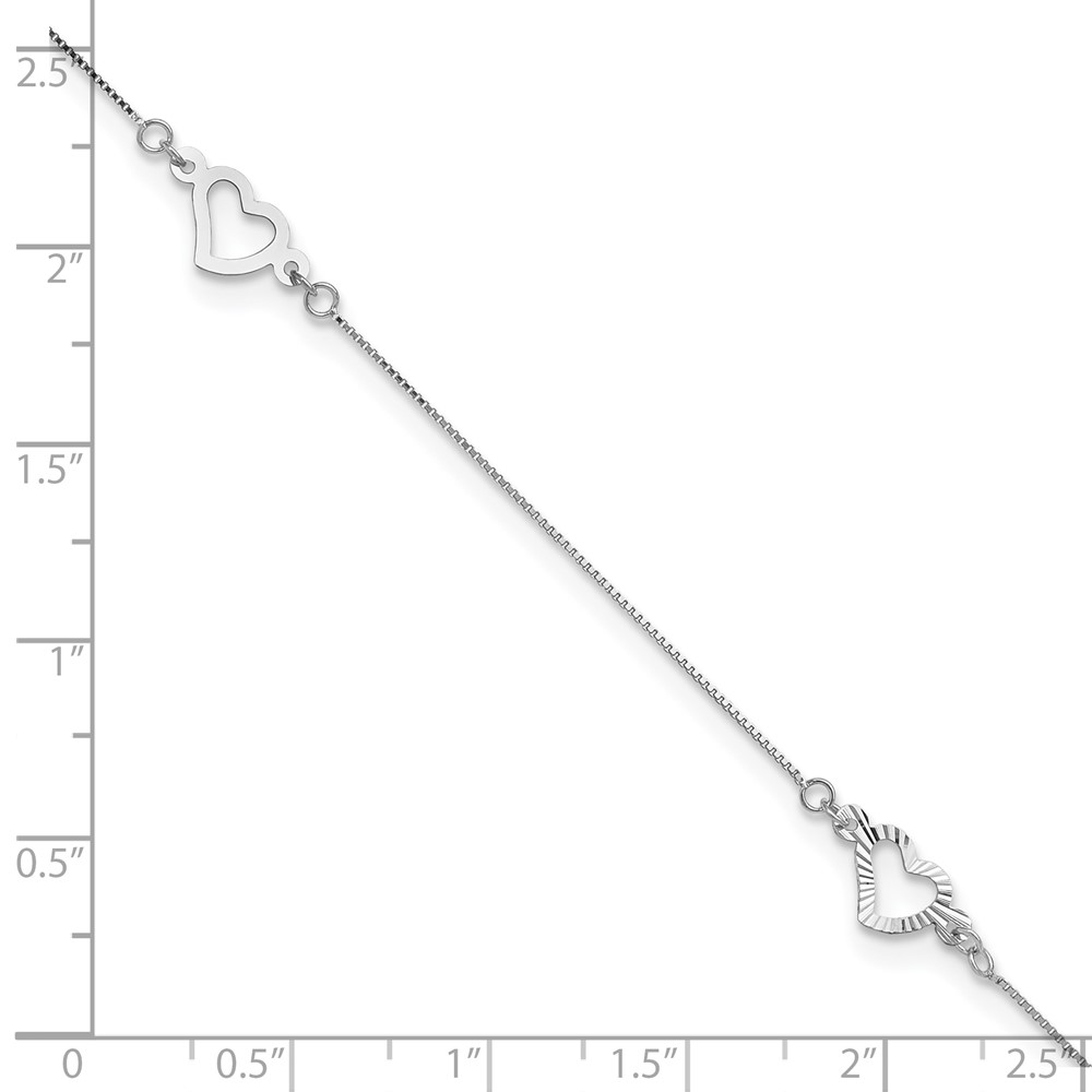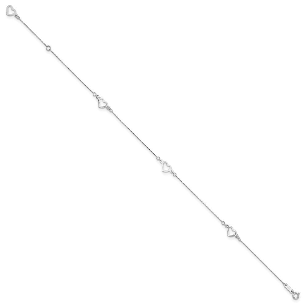 14K White Gold Fancy Open Hearts 3-Station Plus Extender – Total Anklet