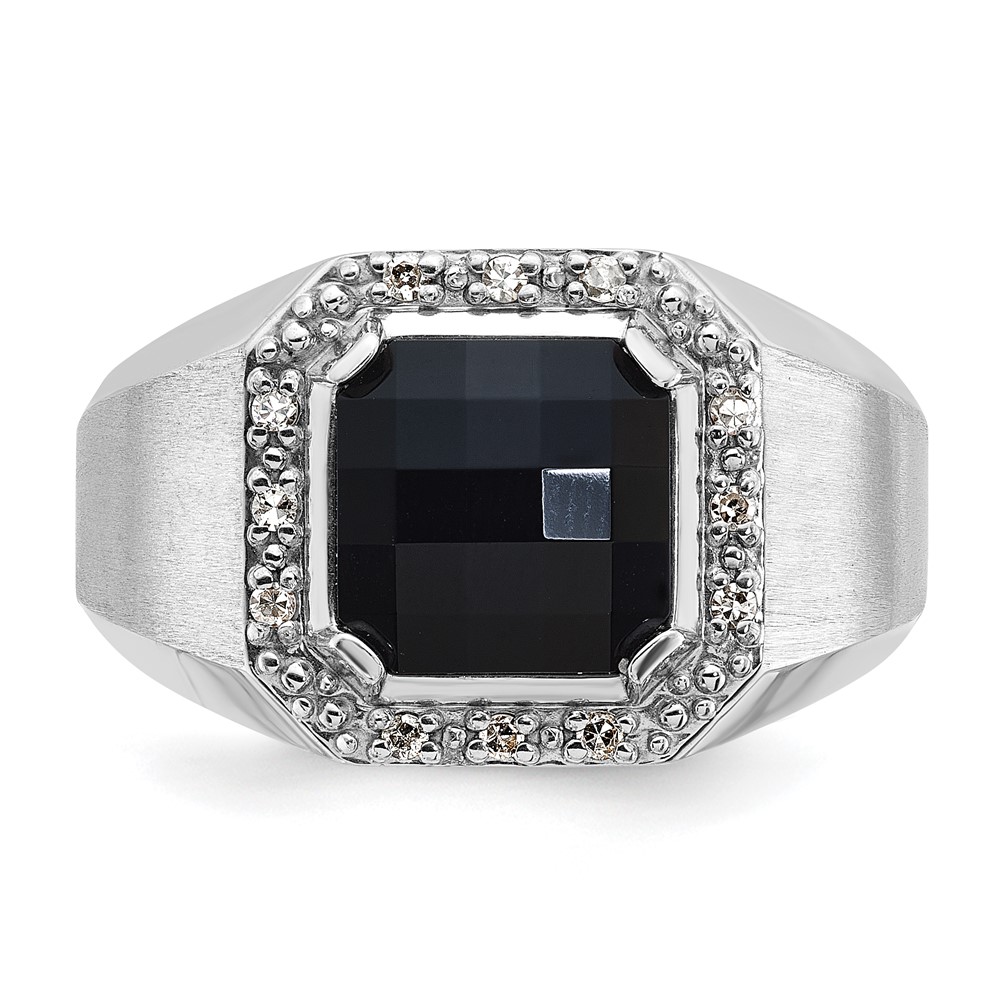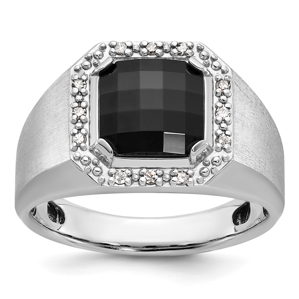 14k White Gold IBGoodman Men’s Onyx and 1/8 carat Diamond Complete Ring