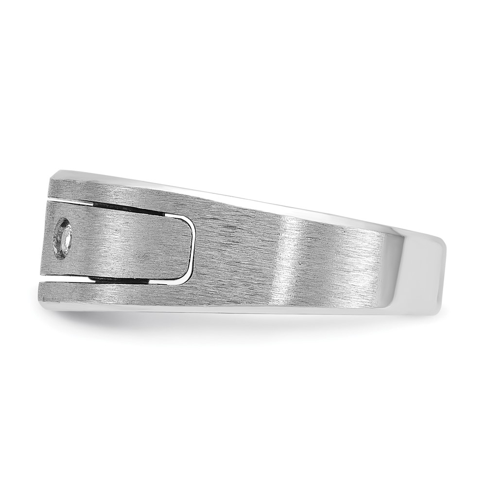 14k White Gold IBGoodman Men’s Polished, Antiqued and Satin 1/6 carat Diamond Complete Ring