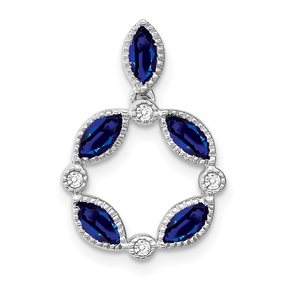 14k White Gold Marquise Sapphire and Diamond Circle Chain Slide