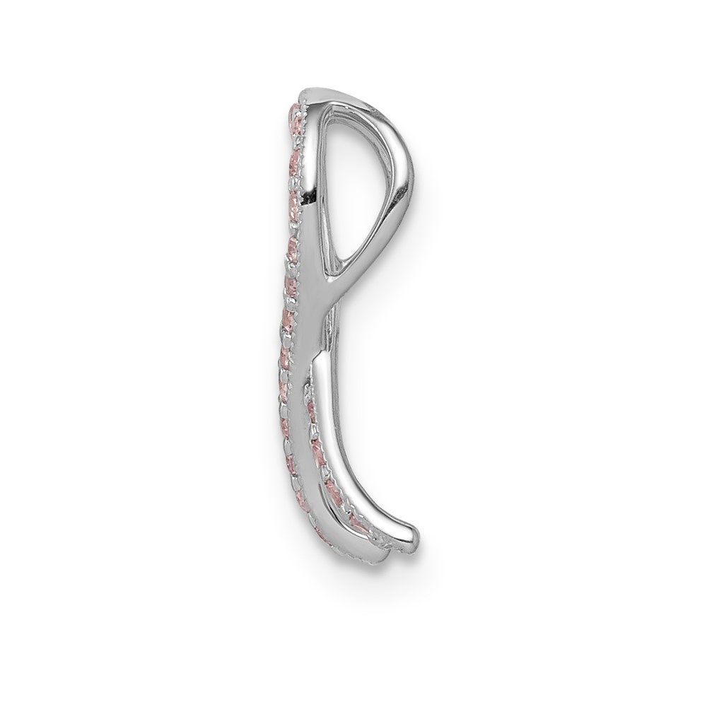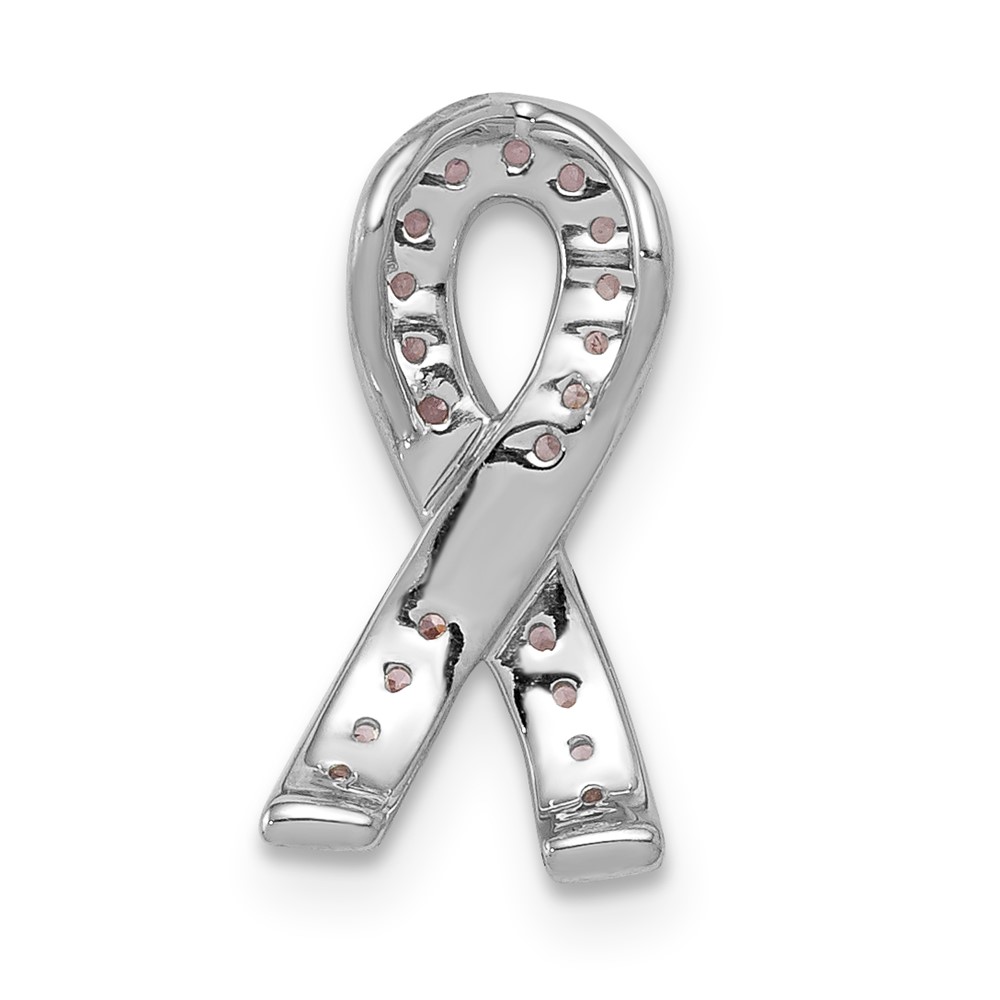 14k White Gold Pink Sapphire Awareness Ribbon Pendant