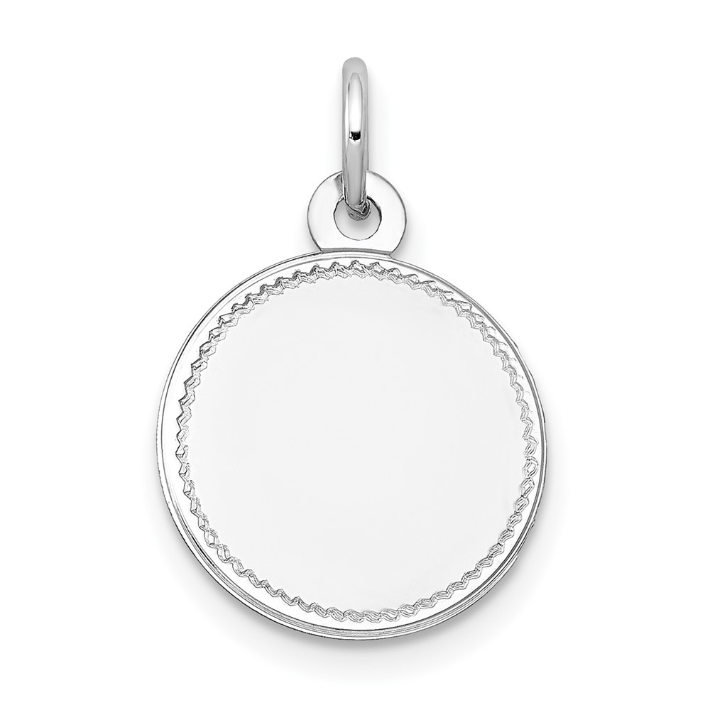 14k White Gold Plain with Zig-Zag Edge .013 Gauge Round Engravable 13mm Disc Charm