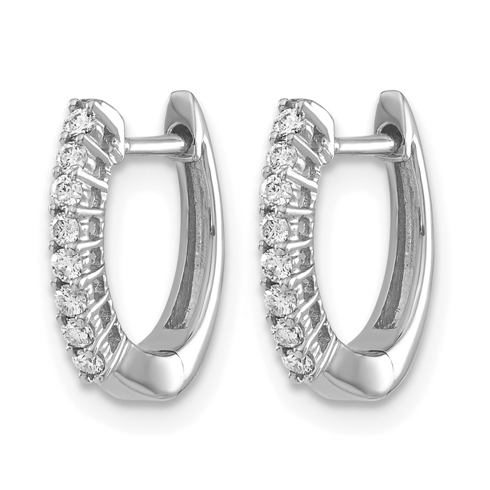 14k White Gold Polished Diamond Hinged Hoop Earrings