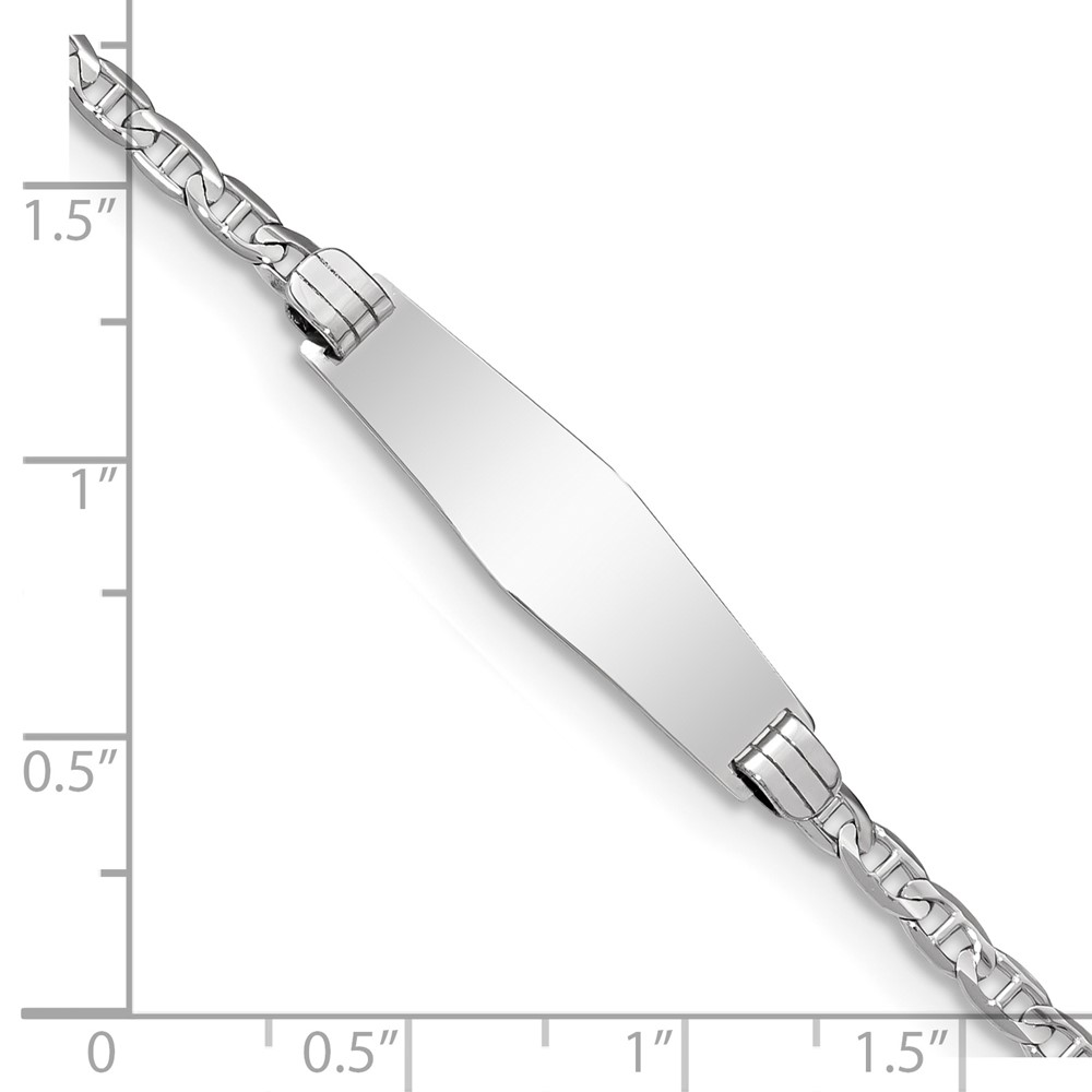14k White Gold Polished Semi-Solid Chain/Solid Plate Anchor Link Soft Diamond Shape 25.5×7.8mm Plate 7 inch ID Bracelet