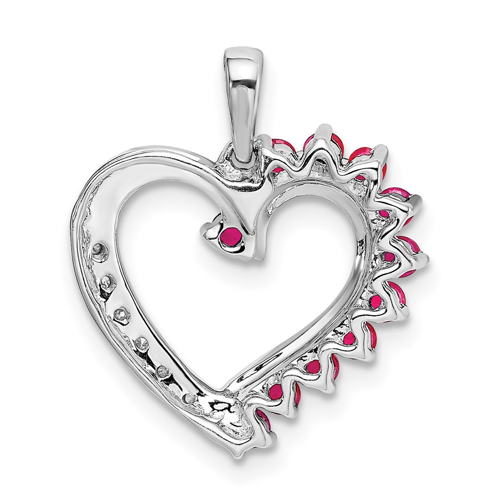14K White Gold Polished Diamond and Pink Tourmaline Heart Chain Slide