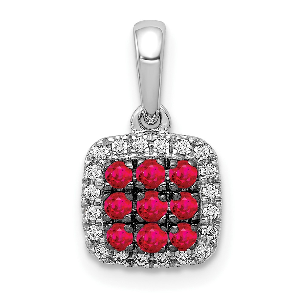 14k White Gold with Black Rhodium Diamond and .23 Ruby Cluster Square Halo Pendant