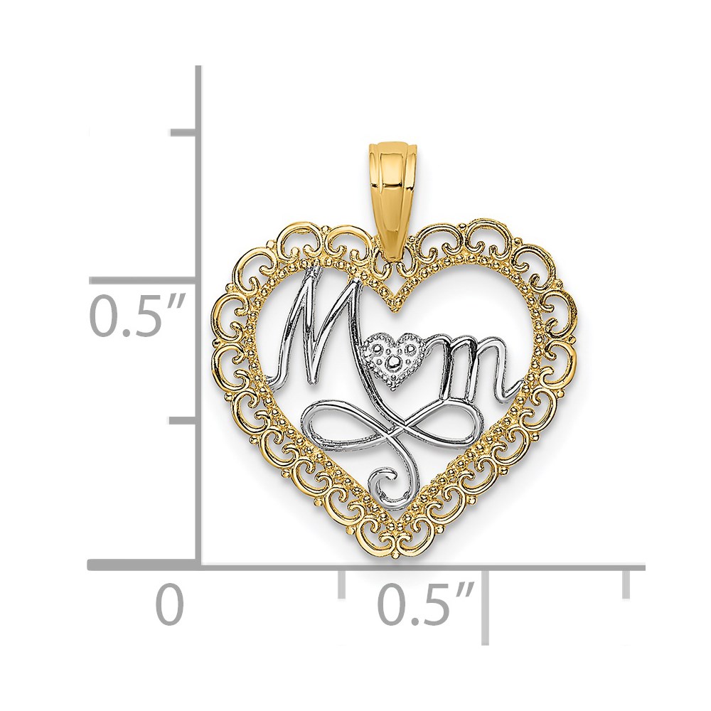 14k with White Rhodium Cut-Out MOM In Scalloped Heart Charm