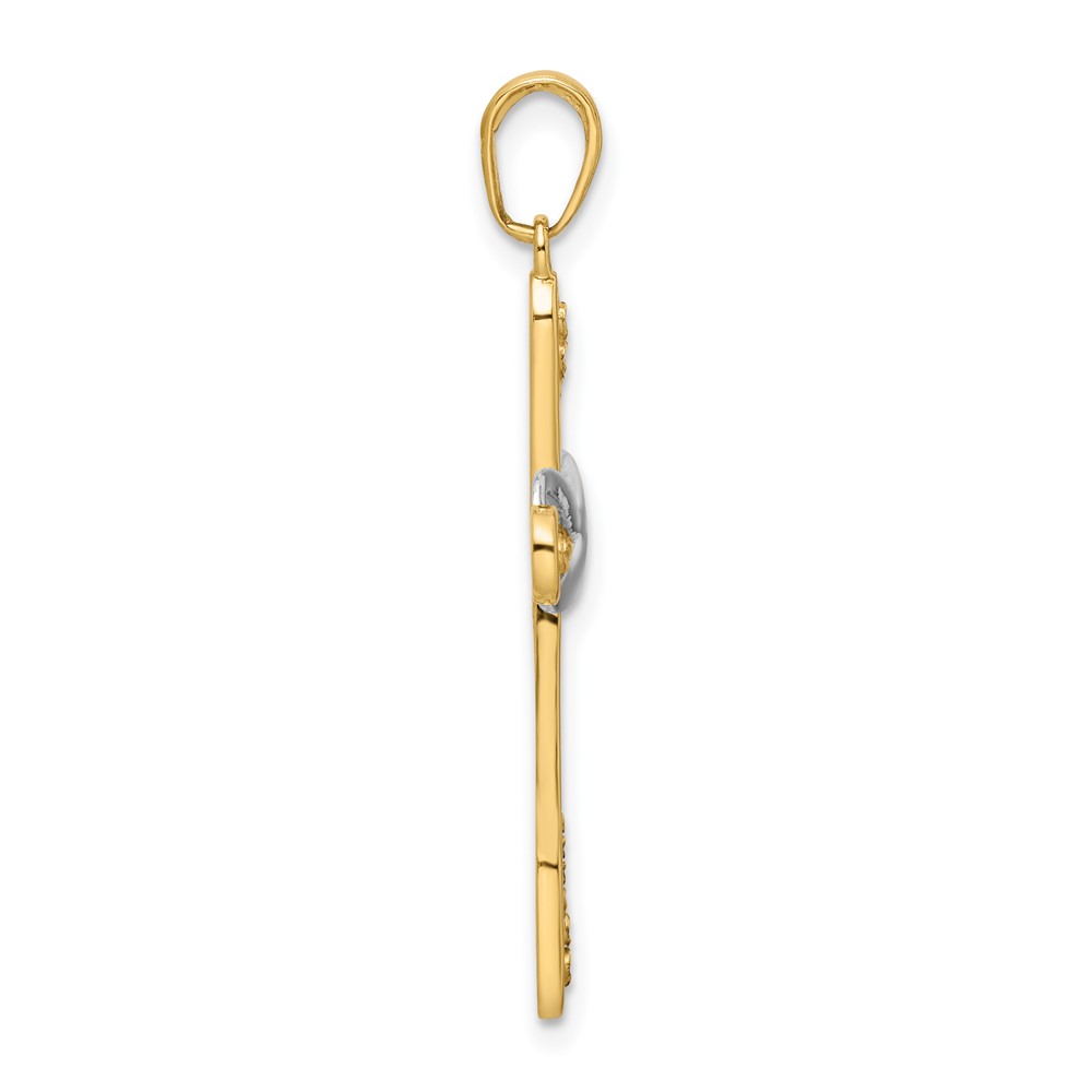 14K with White Rhodium Diamond-cut Cross and Infinity Pendant