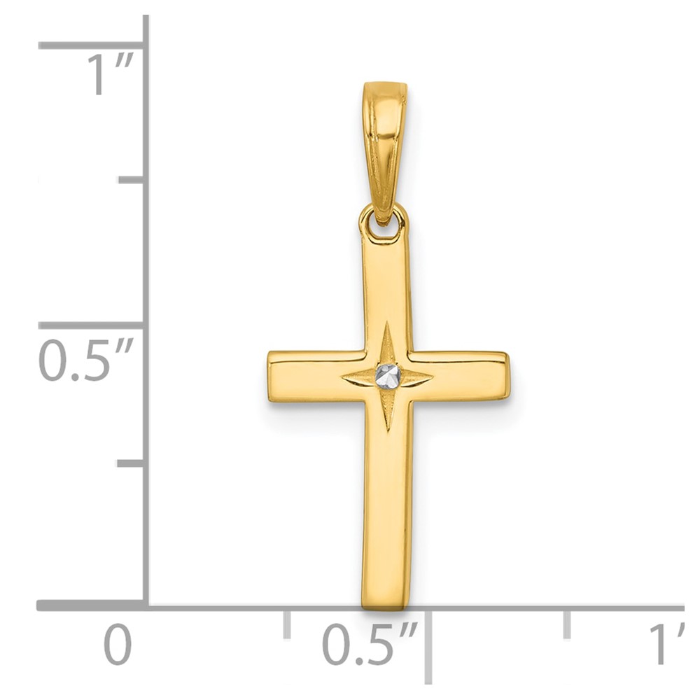 14K with White Rhodium Diamond-cut Latin Cross Pendant