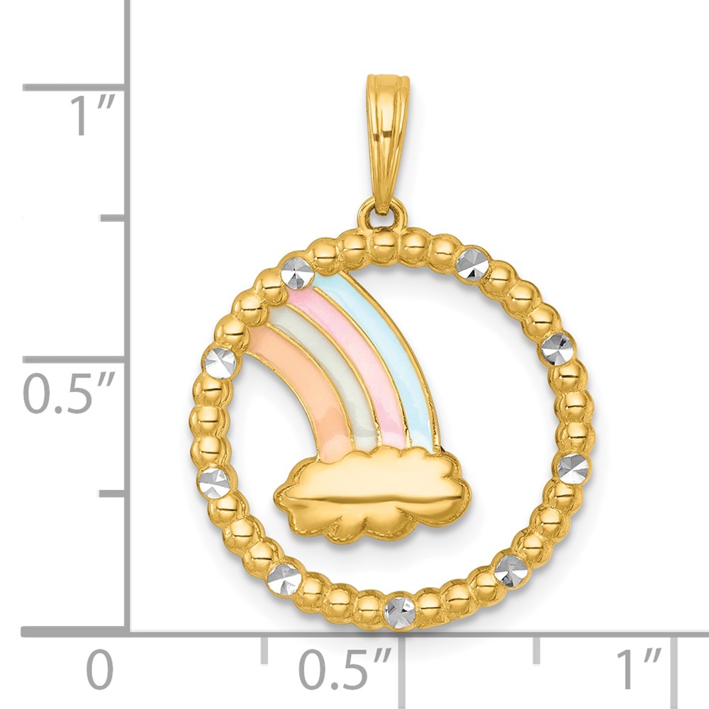 14k with White Rhodium Multi Color Enamel Rainbow With Cloud in Circle Charm