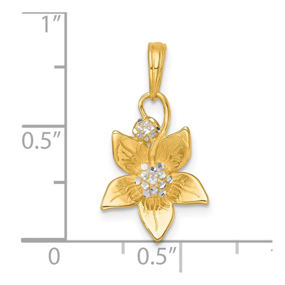 14k with White Rhodium Polished Blooming Flower Charm