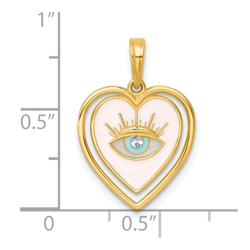 14k with White Rhodium Polished Multi Color Enamel Eye In Heart Charm