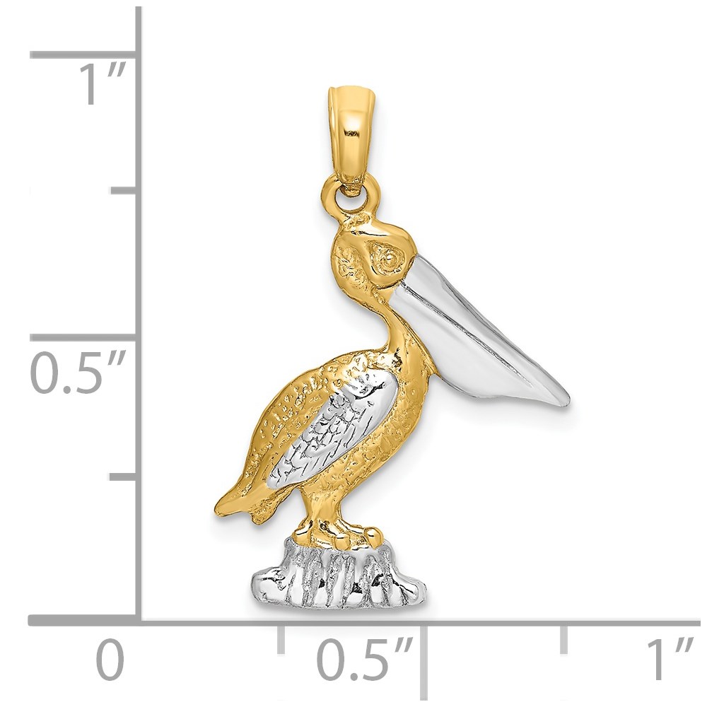 14K with White Rhodium Standing Pelican Charm