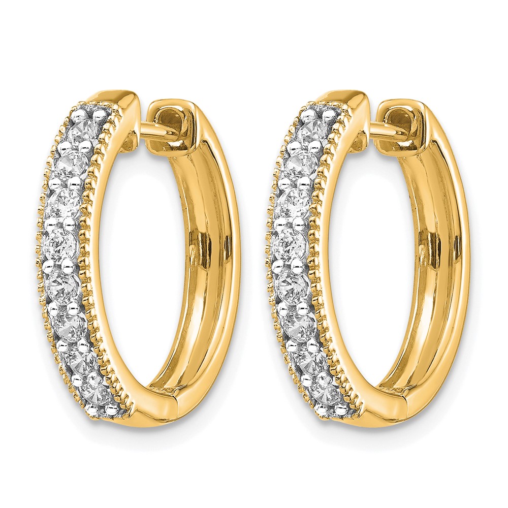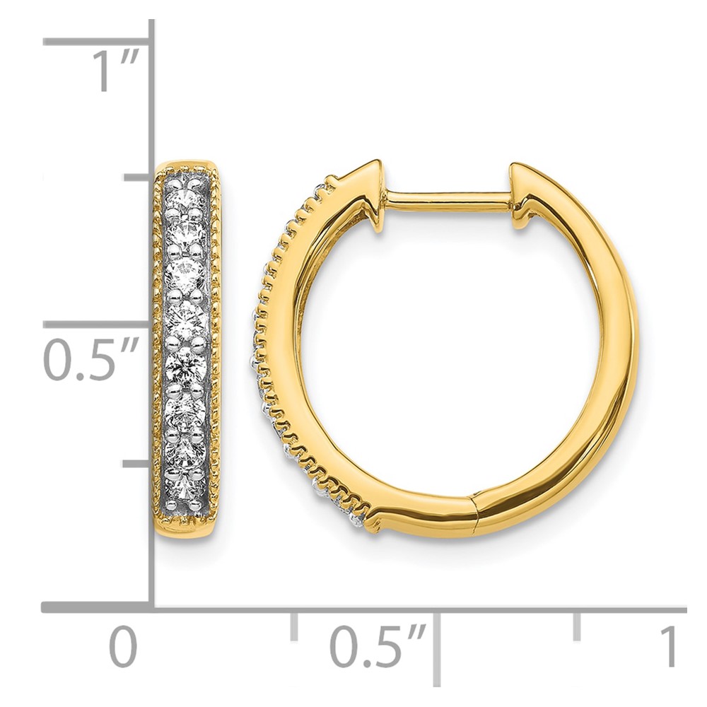 14k Yellow Gold Diamond Milgrain Hinged Hoop Earrings