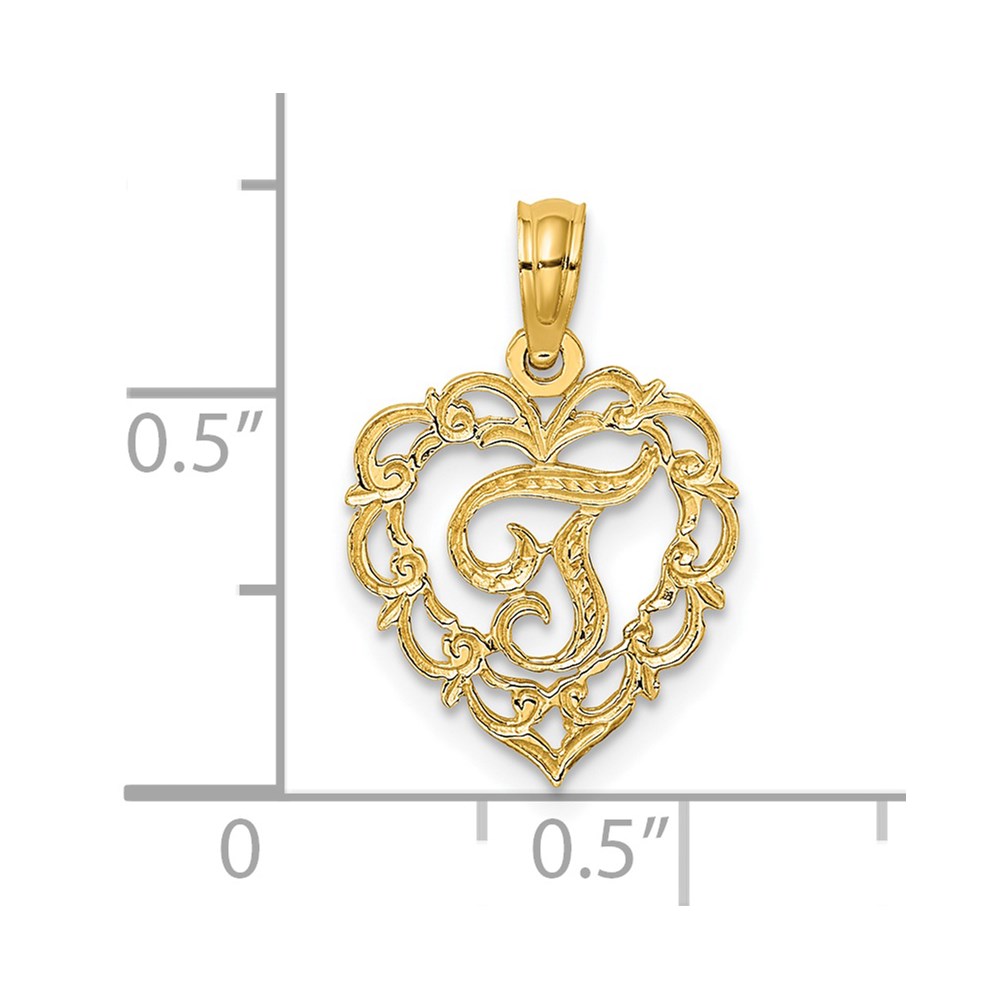 14KY Heart Script Letter T Initial Charm