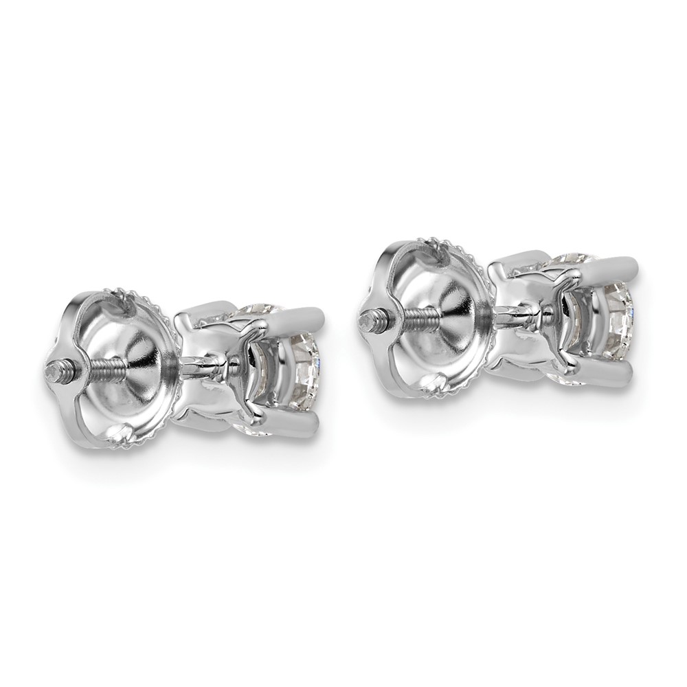 18k White Gold 1 carat Lab Grown Diamond VS+ F+ Round Complete Four Prong Screwback Stud Earrings