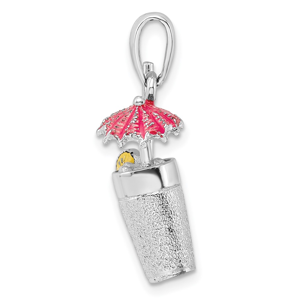 De-Ani Sterling Silver Rhodium-Plated 3D Enameled Cocktail Drink Pendant
