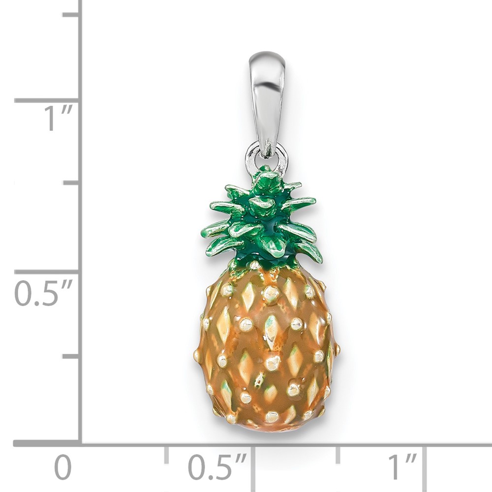 De-Ani Sterling Silver Rhodium-Plated Polished 3D Enameled Pineapple Pendant
