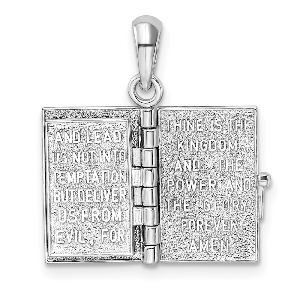De-Ani Sterling Silver Rhodium-Plated Polished 3D Lords Prayer Holy Bible Pendant