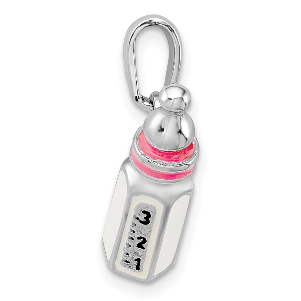 De-Ani Sterling Silver Rhodium-Plated Polished 3D Pink Baby Bottle Pendant