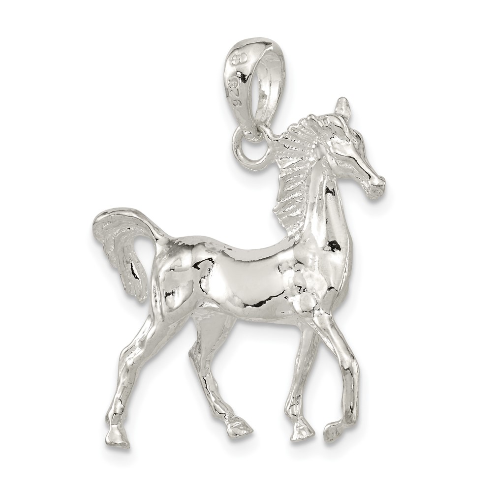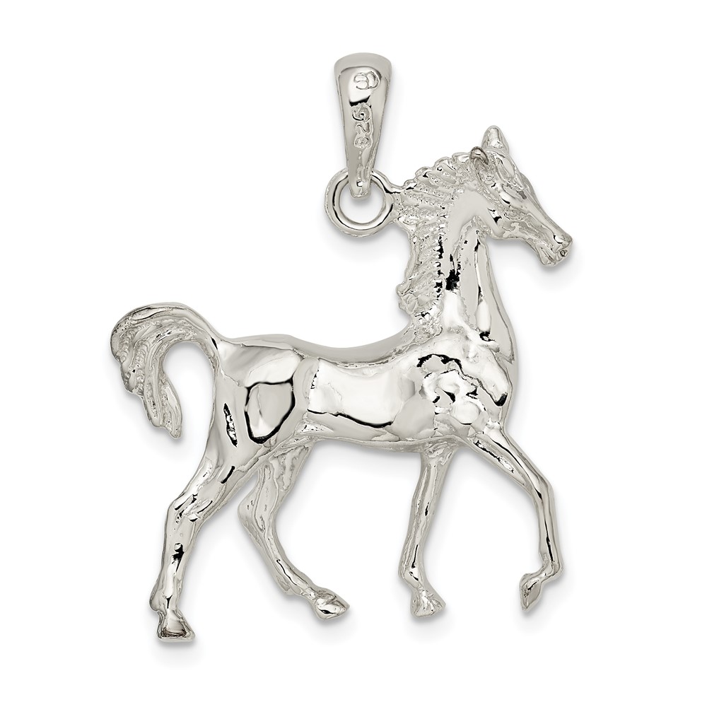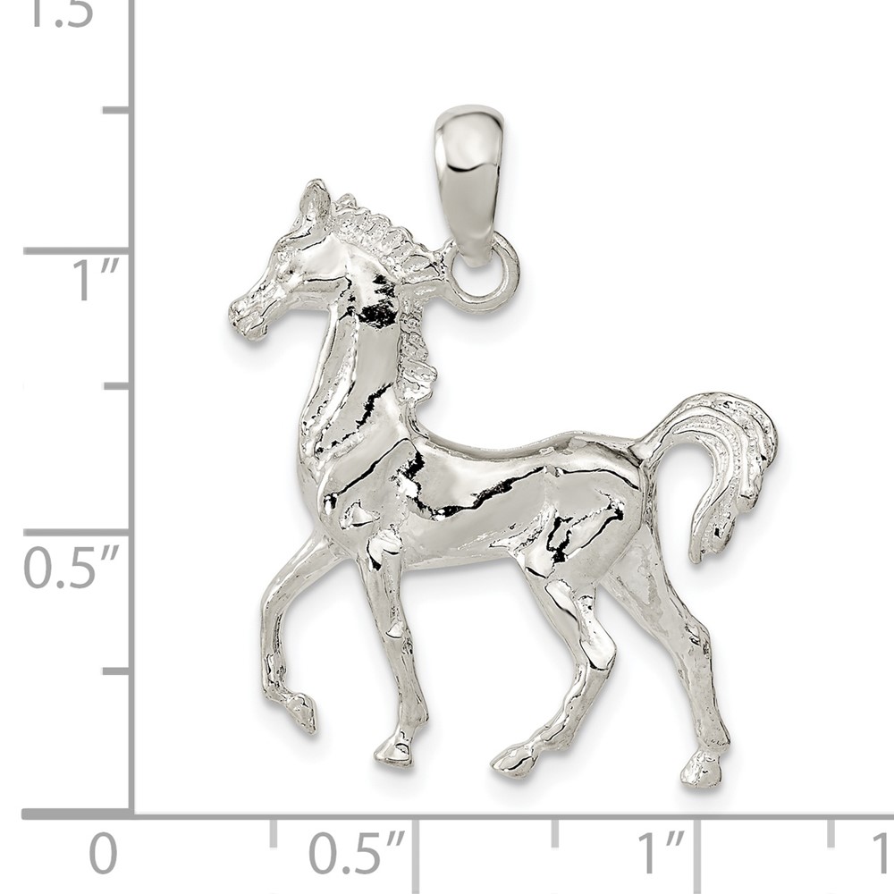 De-Ani Sterling Silver Rhodium-Plated Polished 3D Standing Horse Pendant