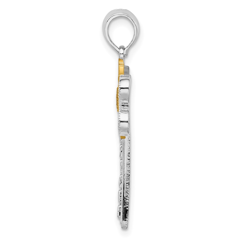 De-Ani Sterling Silver Rhodium-Plated Polished Dragonfly with 14k Accent Pendant