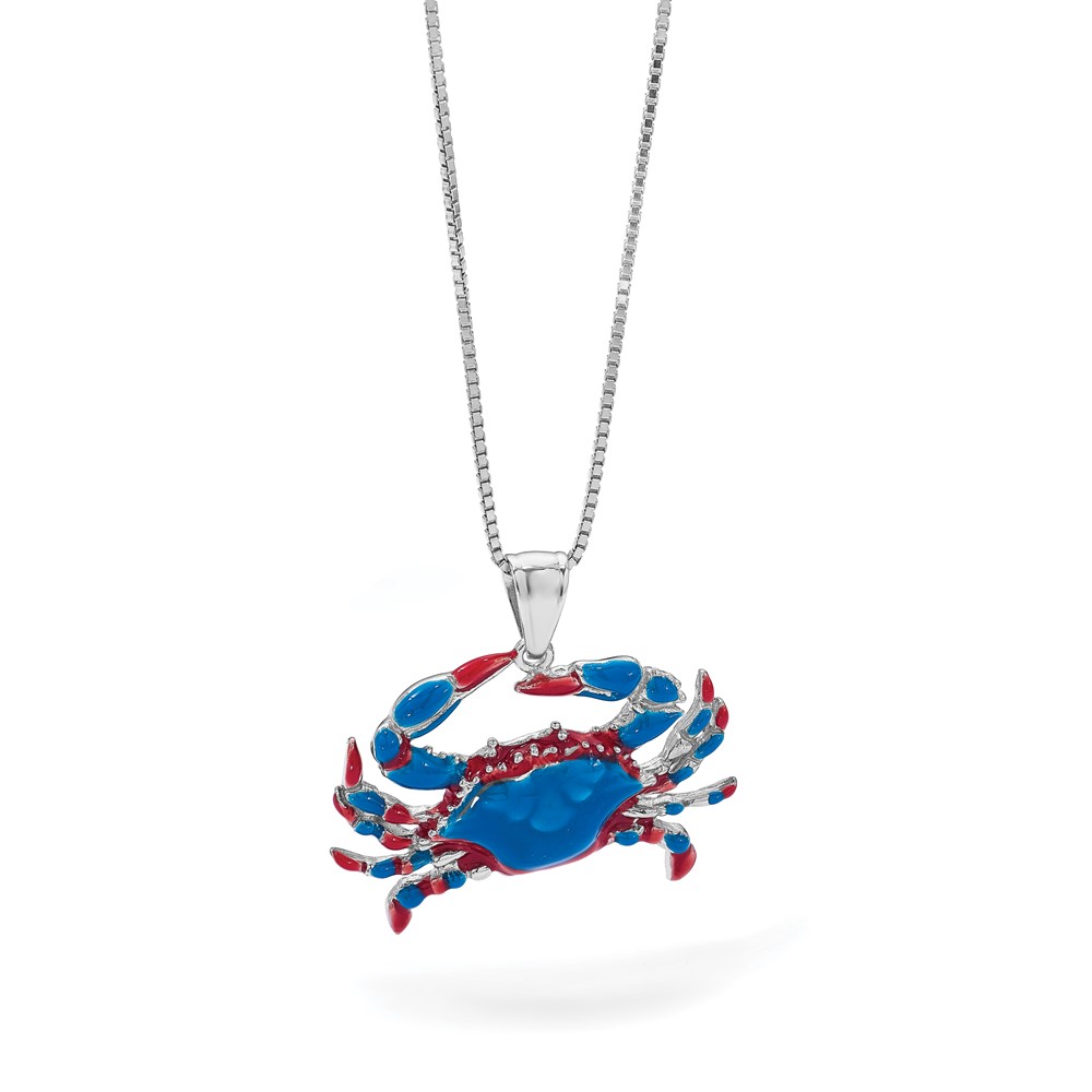 De-Ani Sterling Silver Rhodium-Plated Polished Enameled Blue Crab Pendant