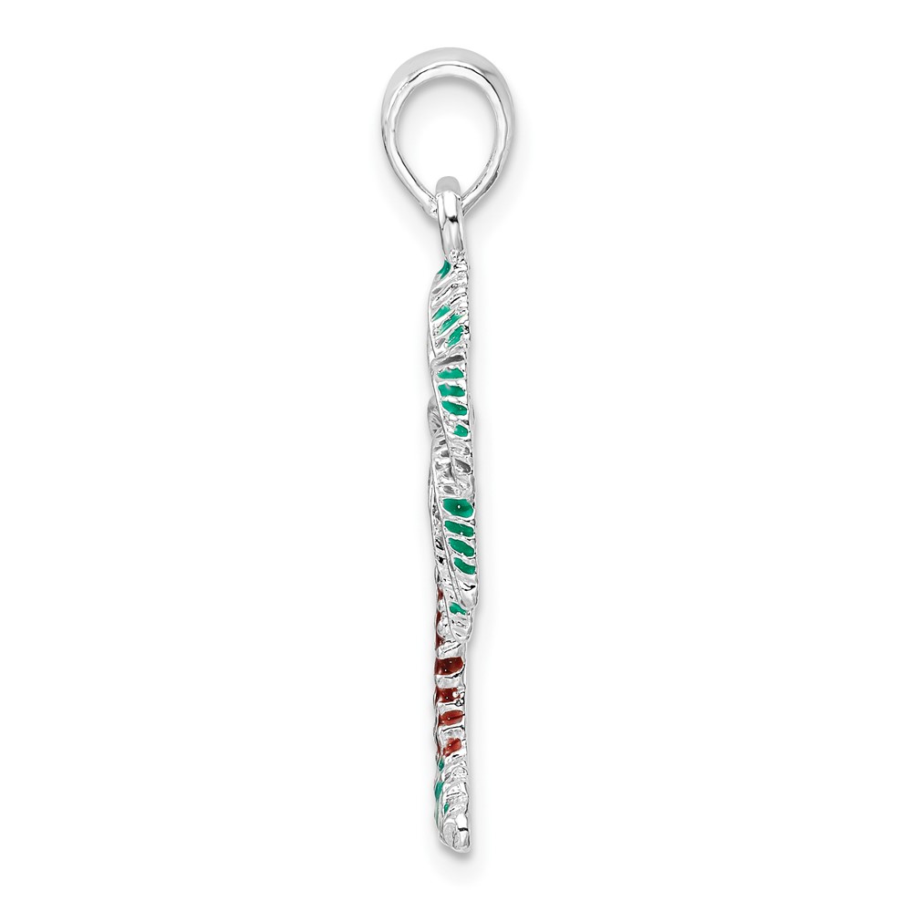 De-Ani Sterling Silver Rhodium-Plated Polished Enameled Palmetto Pendant