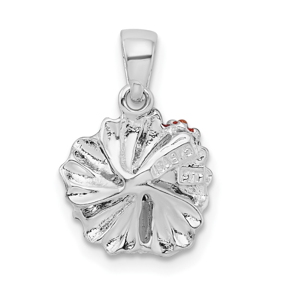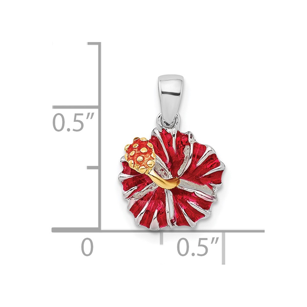 De-Ani Sterling Silver Rhodium-Plated Polished Enameled Red Hibiscus Pendant
