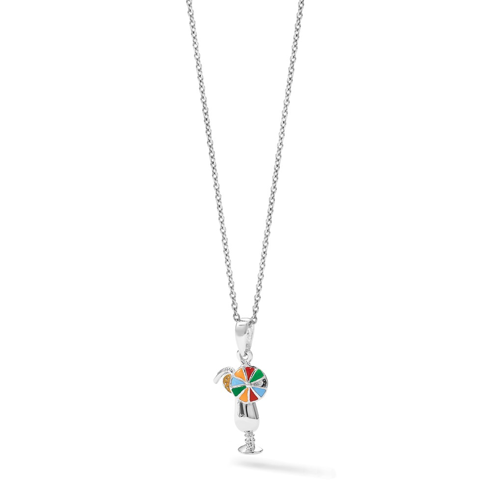 De-Ani Sterling Silver Rhodium-Plated Polished Enameled Tropical Drink Pendant