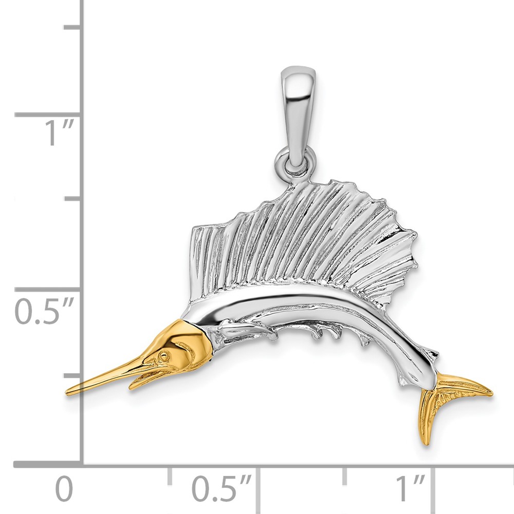 De-Ani Sterling Silver Rhodium-Plated Polished Sailfish with 14k Accents Pendant