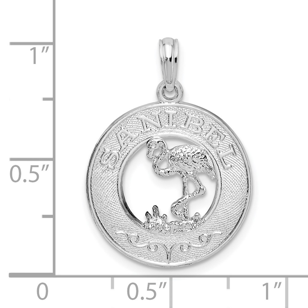De-Ani Sterling Silver Rhodium-Plated Polished Sanibel Circle with Flamingo Pendant
