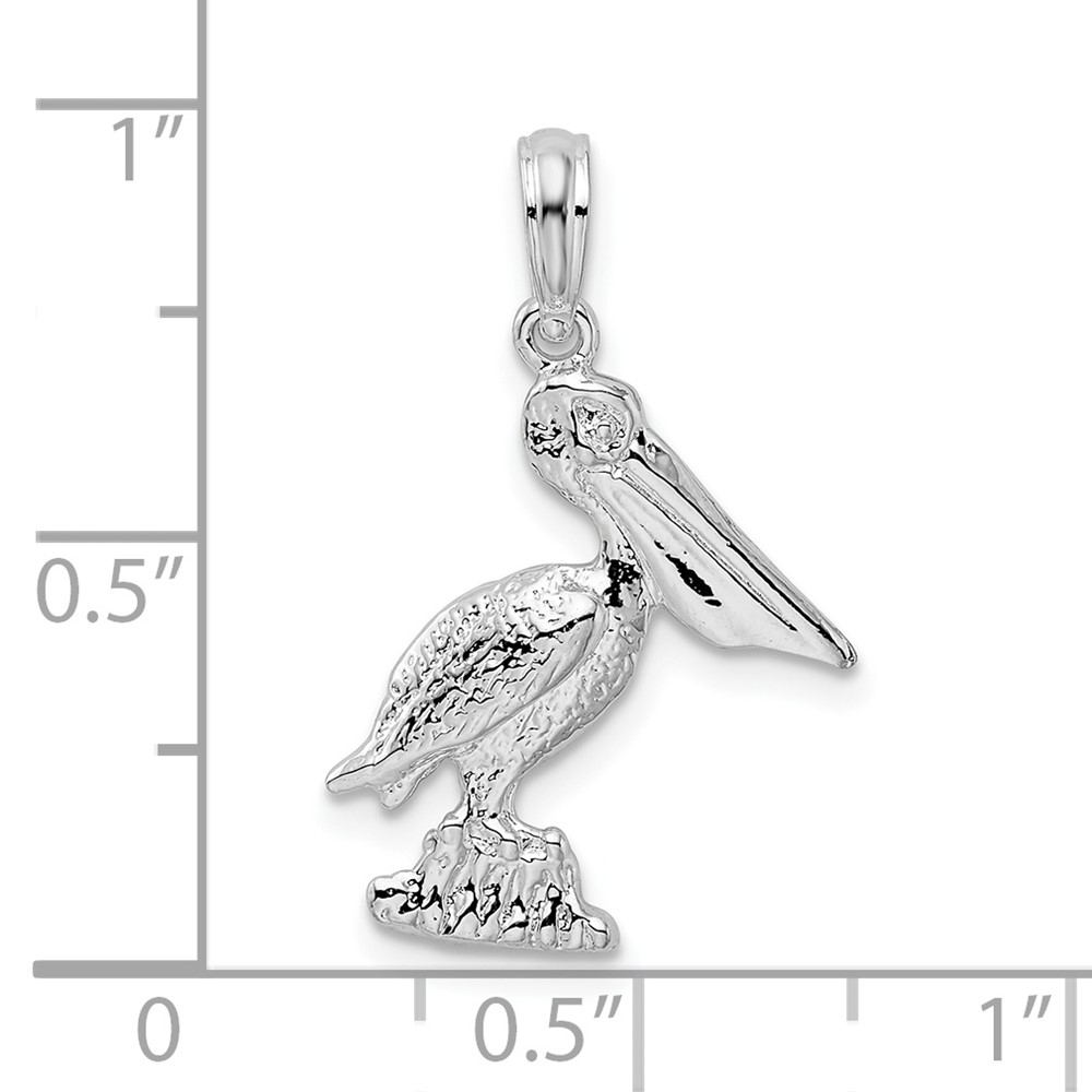 De-Ani Sterling Silver Rhodium-Plated Polished Standing Pelican Pendant